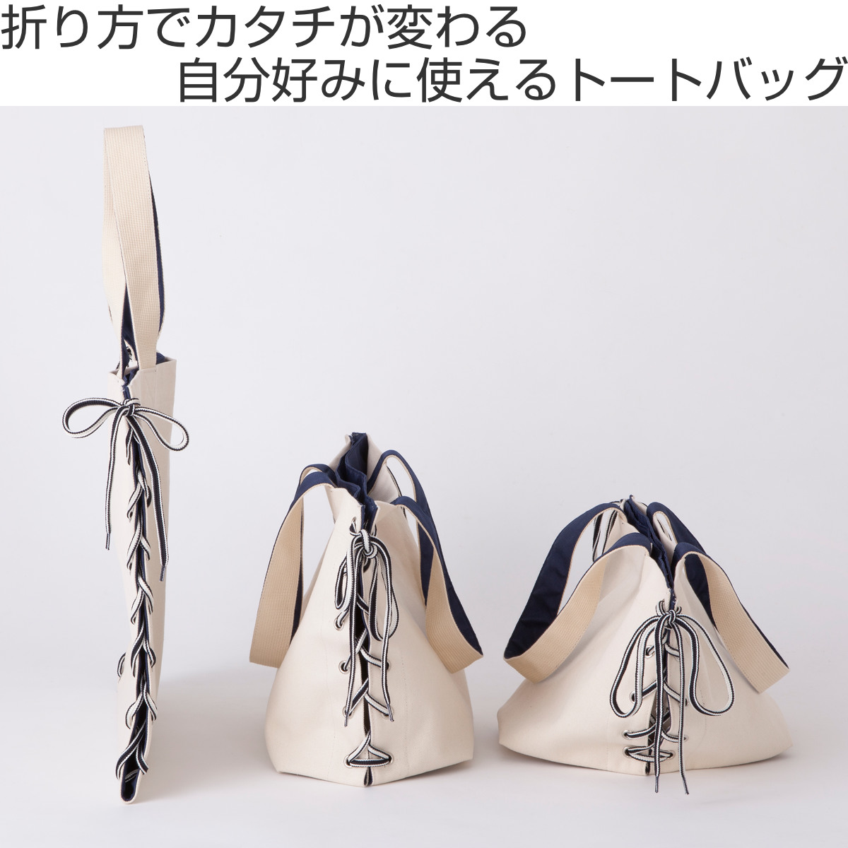 折り方で形が変わるトートバッグ