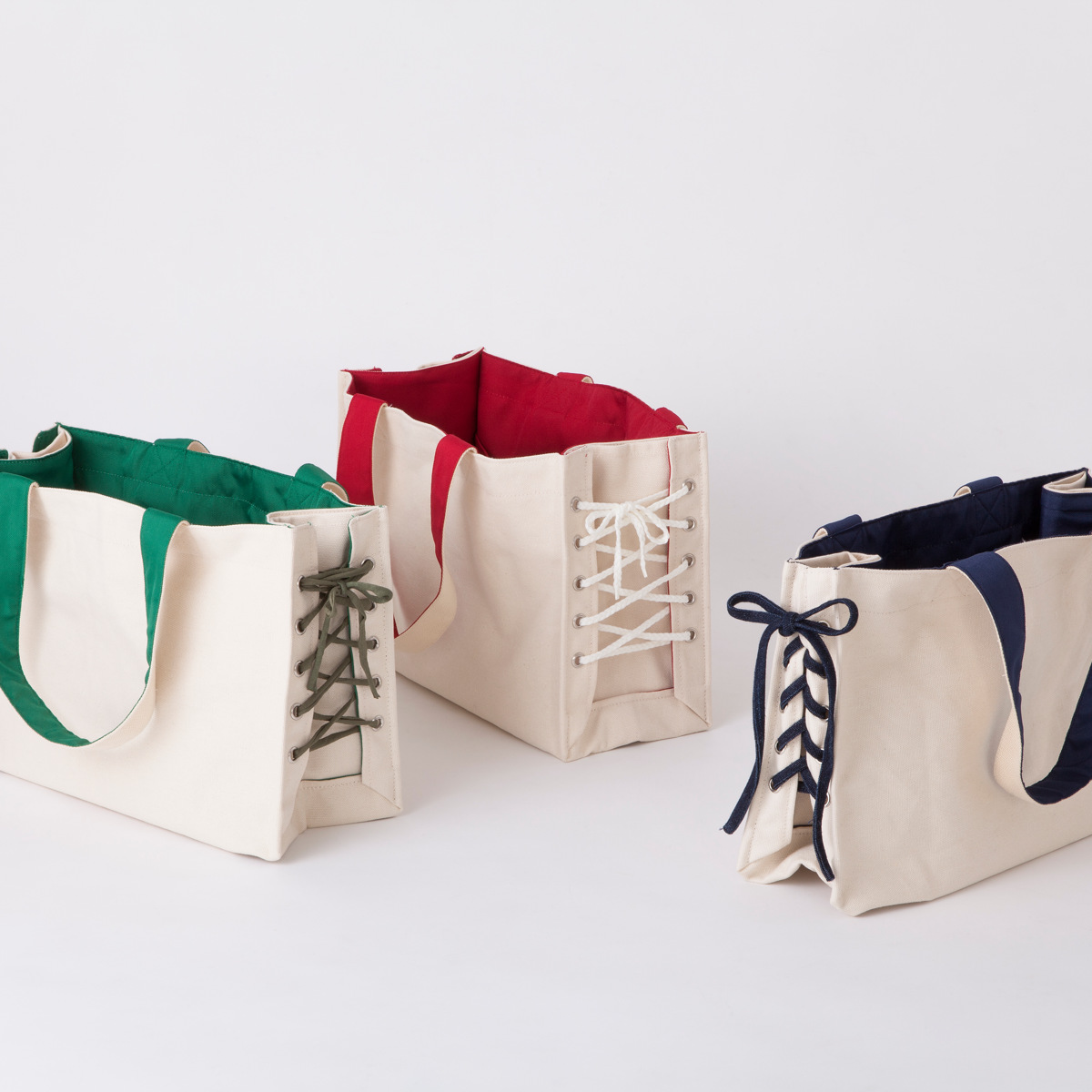 紐の通し方や色、素材を変えることで、バッグの印象を変えられます。お好みの紐や通し方でアレンジをお楽しみください。