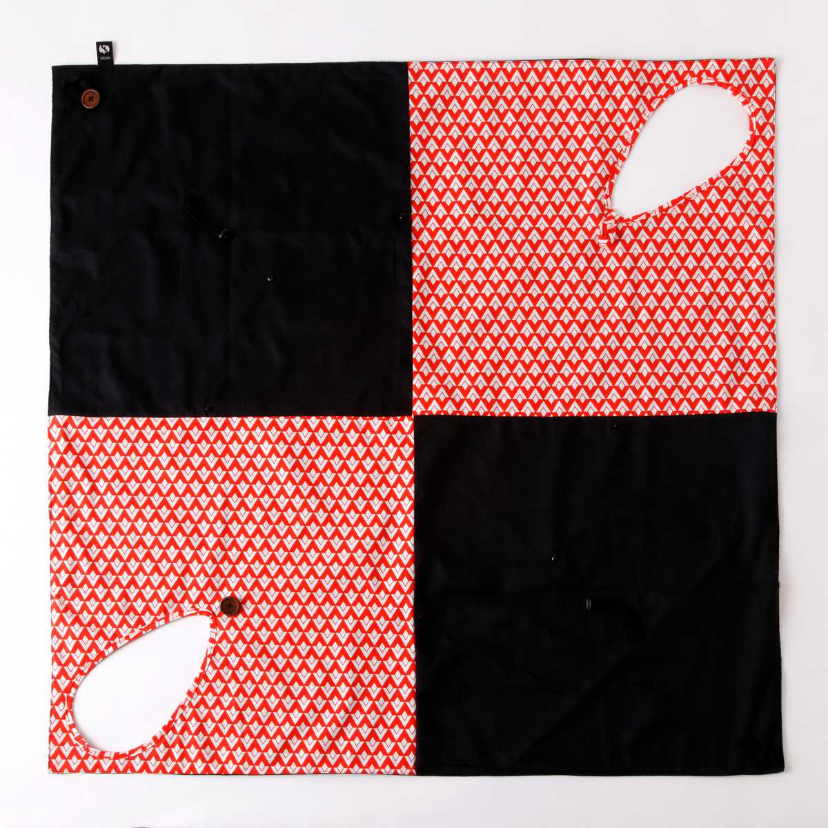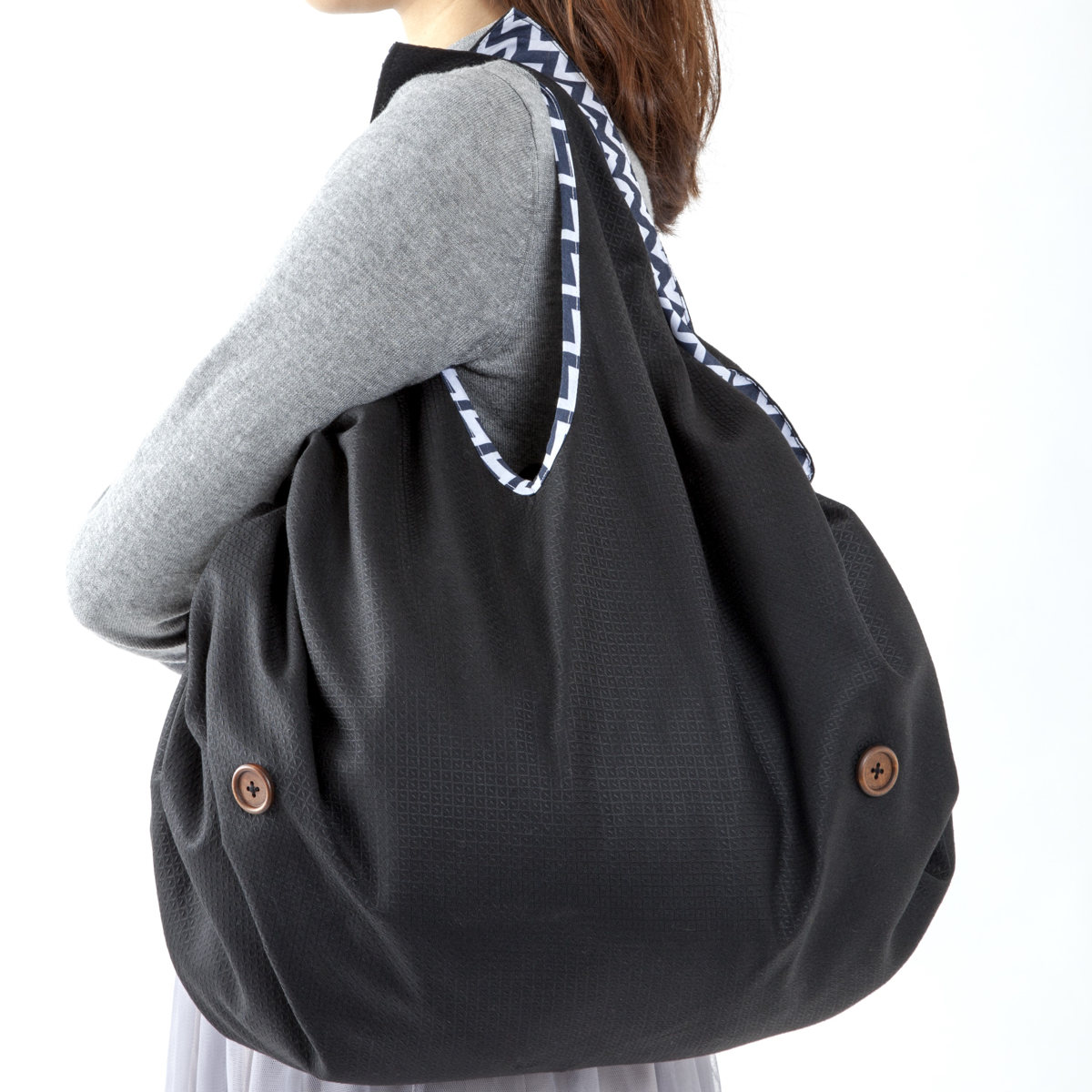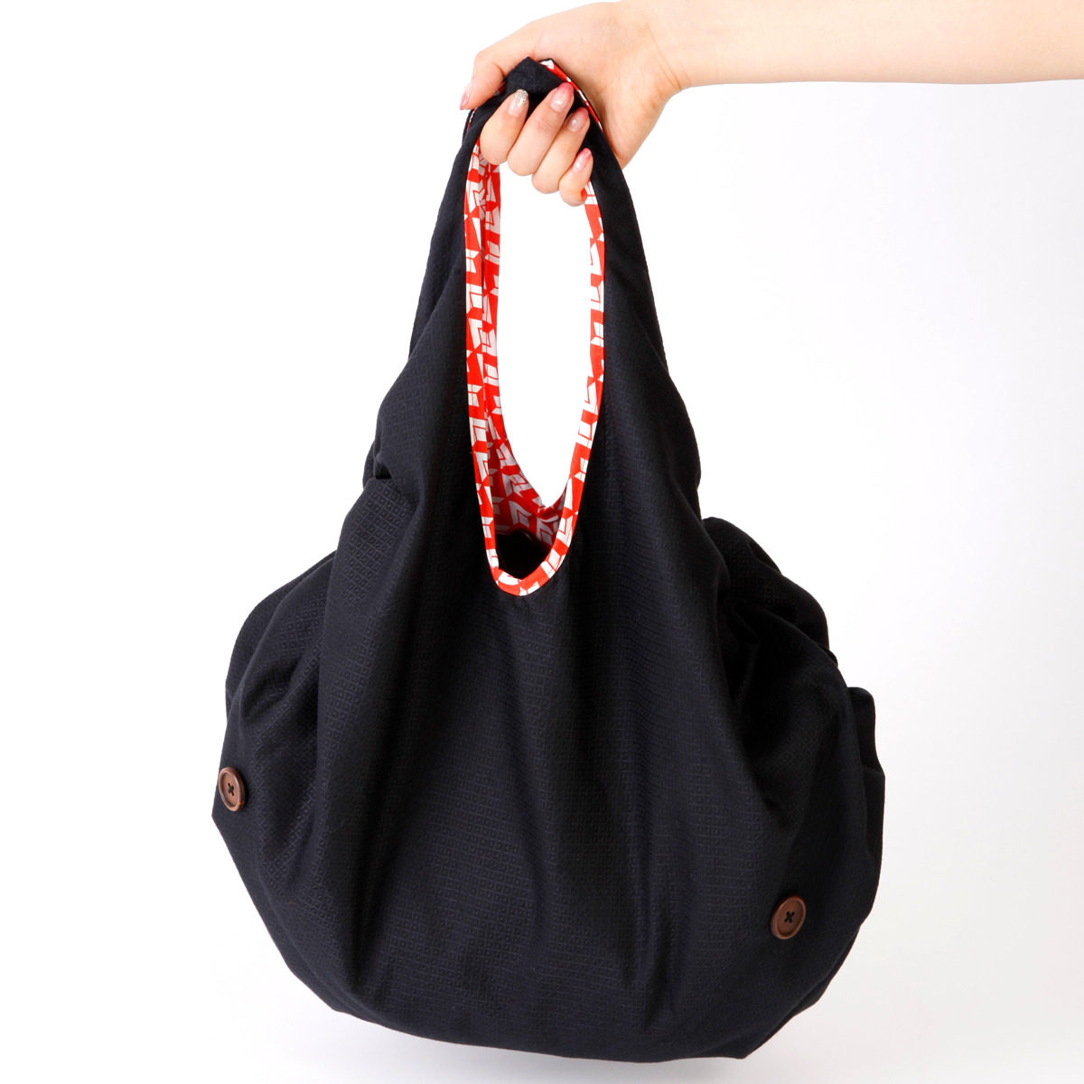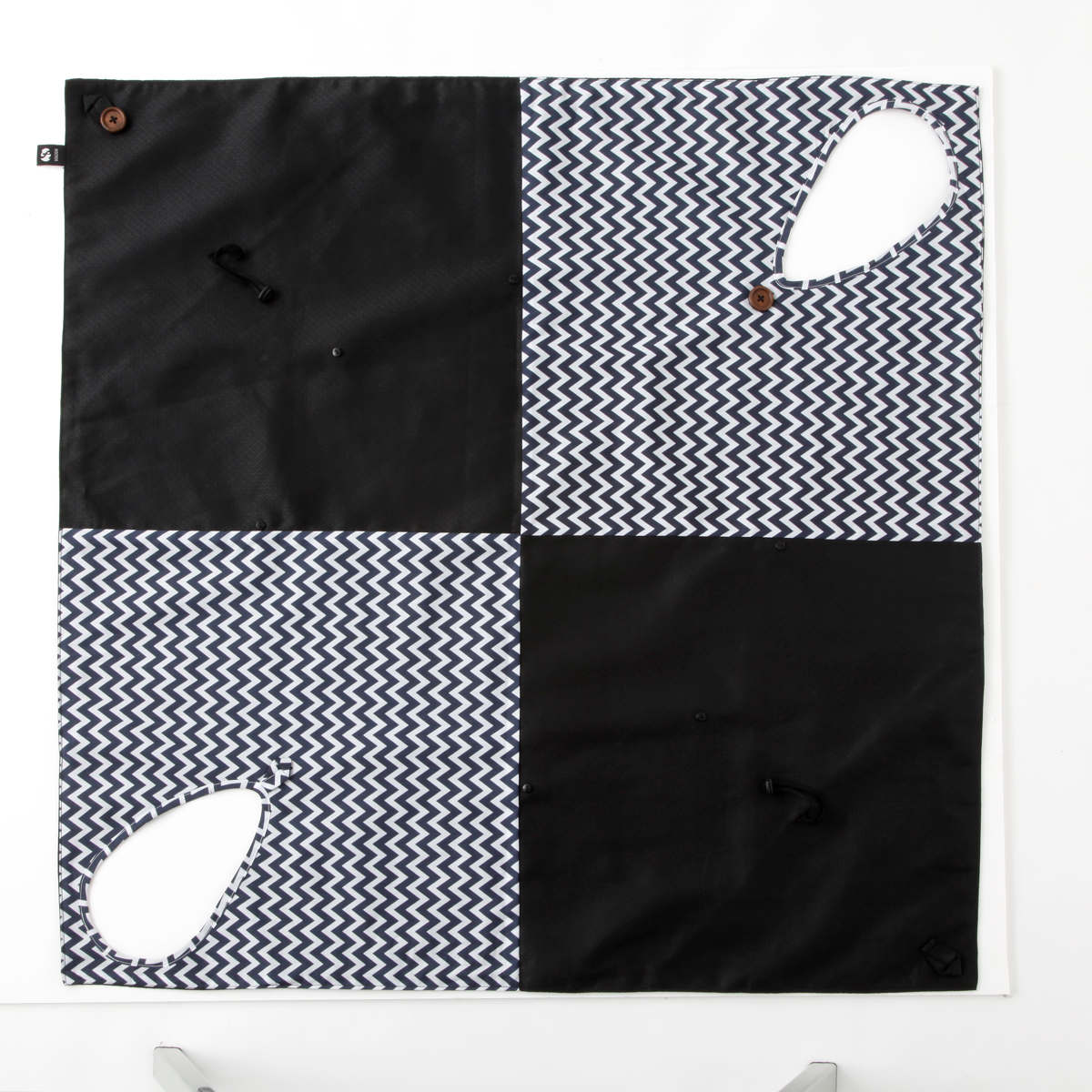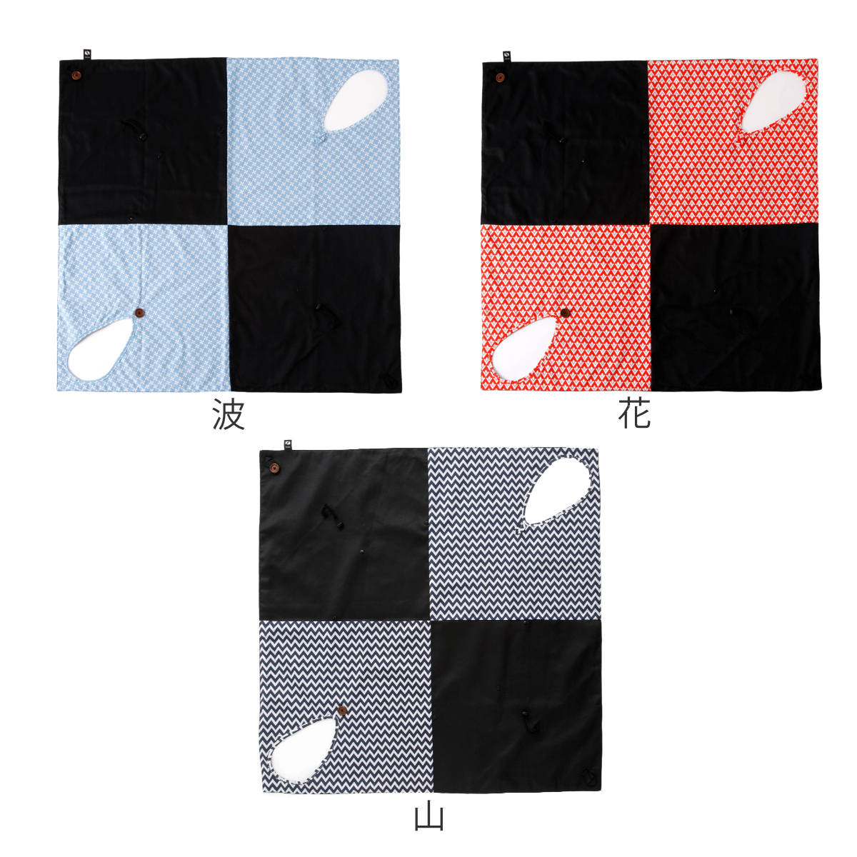 | 材質 | 黒生地:ポリエステル90%、綿10% 柄生地:綿96%、ポリウレタン4% ボタン、ストッパー:PP |