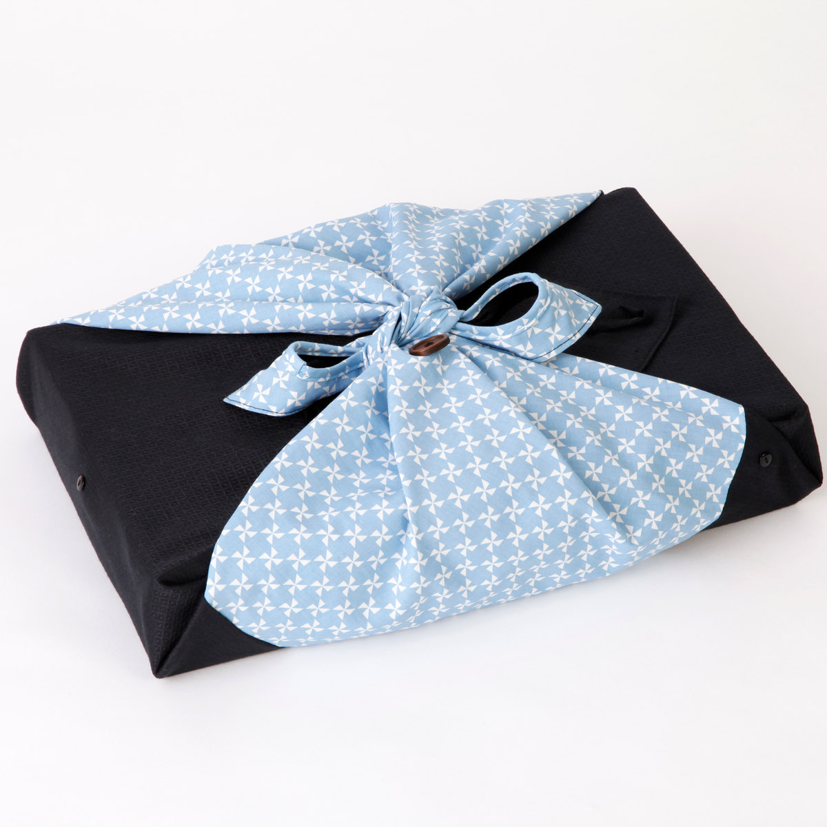 広げると90×90cmの正方形の布になるため、スタンダードな風呂敷として包むこともできます。