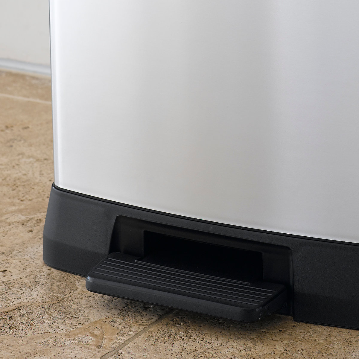 足で軽く踏むだけでサッと開くペダル式ゴミ箱です。手がふさがっていたり汚れている時でもフタを開けられるため、衛生的でとても便利です。スリッパを履いたままでも踏みやすい大きめのペダルです。