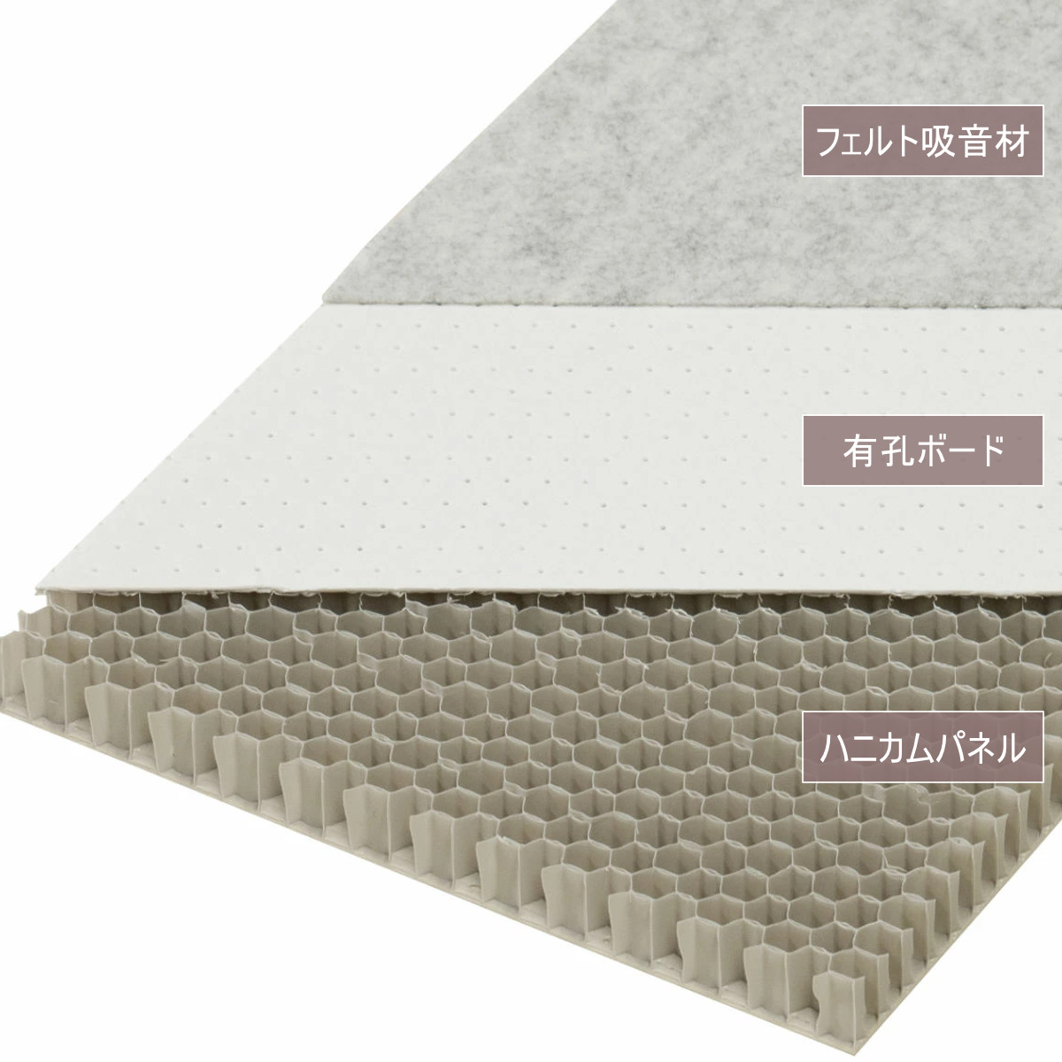 さらにフェルト吸音材が高音域の吸音をサポートし、相乗効果で幅広い音域に対応します。