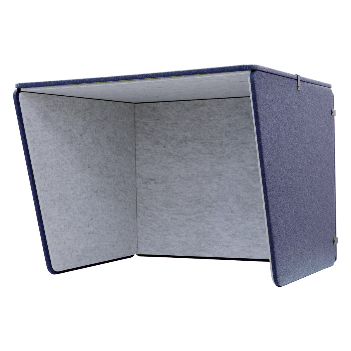 吸音効果で相手に届くノイズを軽減する『リミュートシリーズ』のデスクブース(ワイド)です。テレワークの相手やお客様に、自分の声以外のノイズが届きにくくなり、スムーズに会話ができます。また、設計・開発・エンジニアなど集中力が求められる作業時も、視界をほどよく遮りながら作業に没頭できる環境をつくります。