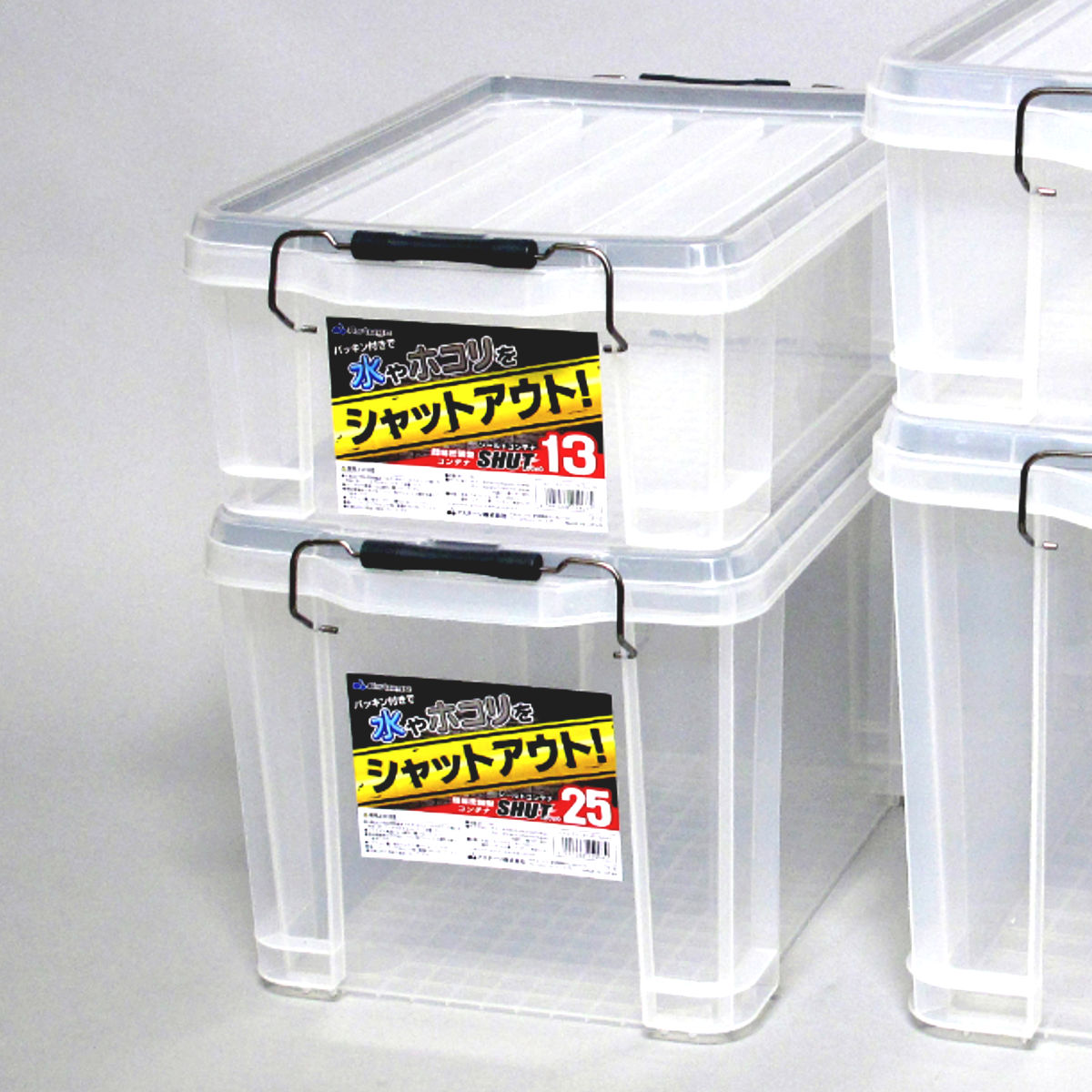 同じサイズ同士はもちろん、同シリーズで高さ違いの「シャット13」を最大で5段まで積み重ねが可能です。クローゼットや物置などで場所をとらずに大容量の収納ができます。