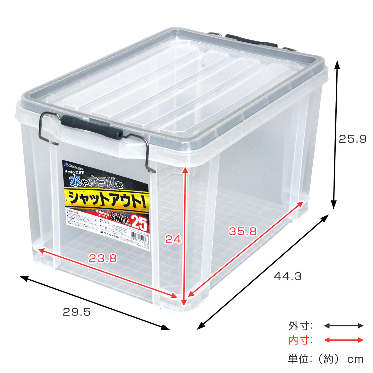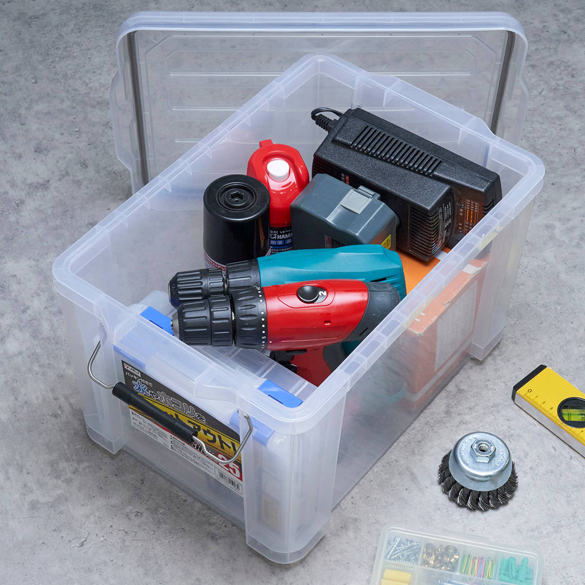 工具・アウトドア用品・防災グッズ・ガーデニング用品・衣類・おもちゃなど、様々な日用品の保管ができます。中身がひと目で確認できるクリアタイプのため、何を収納したか忘れにくく、管理がしやすいです。