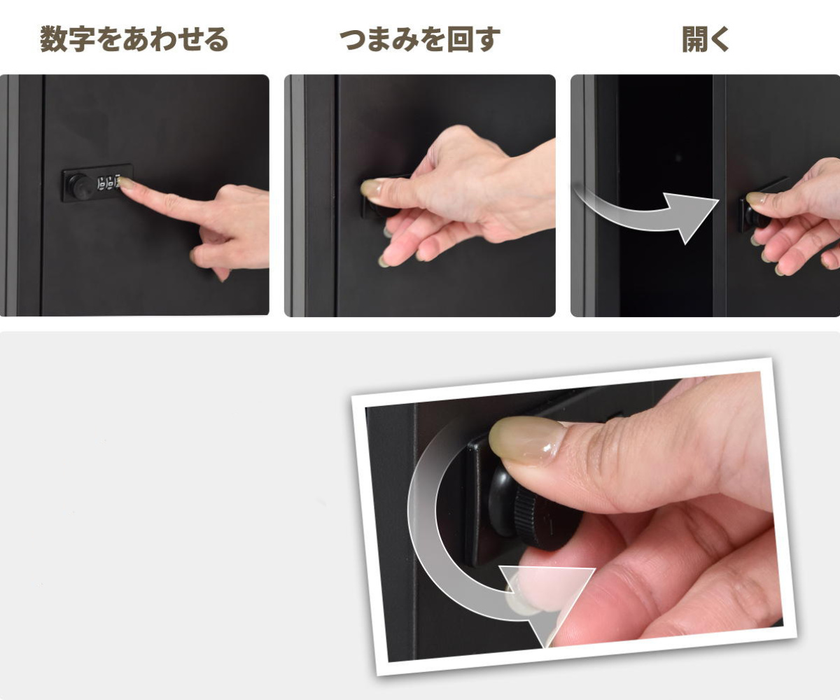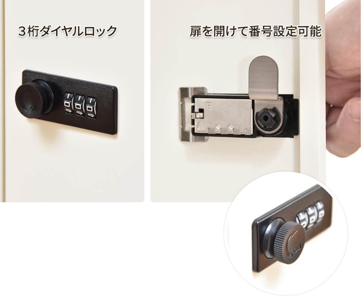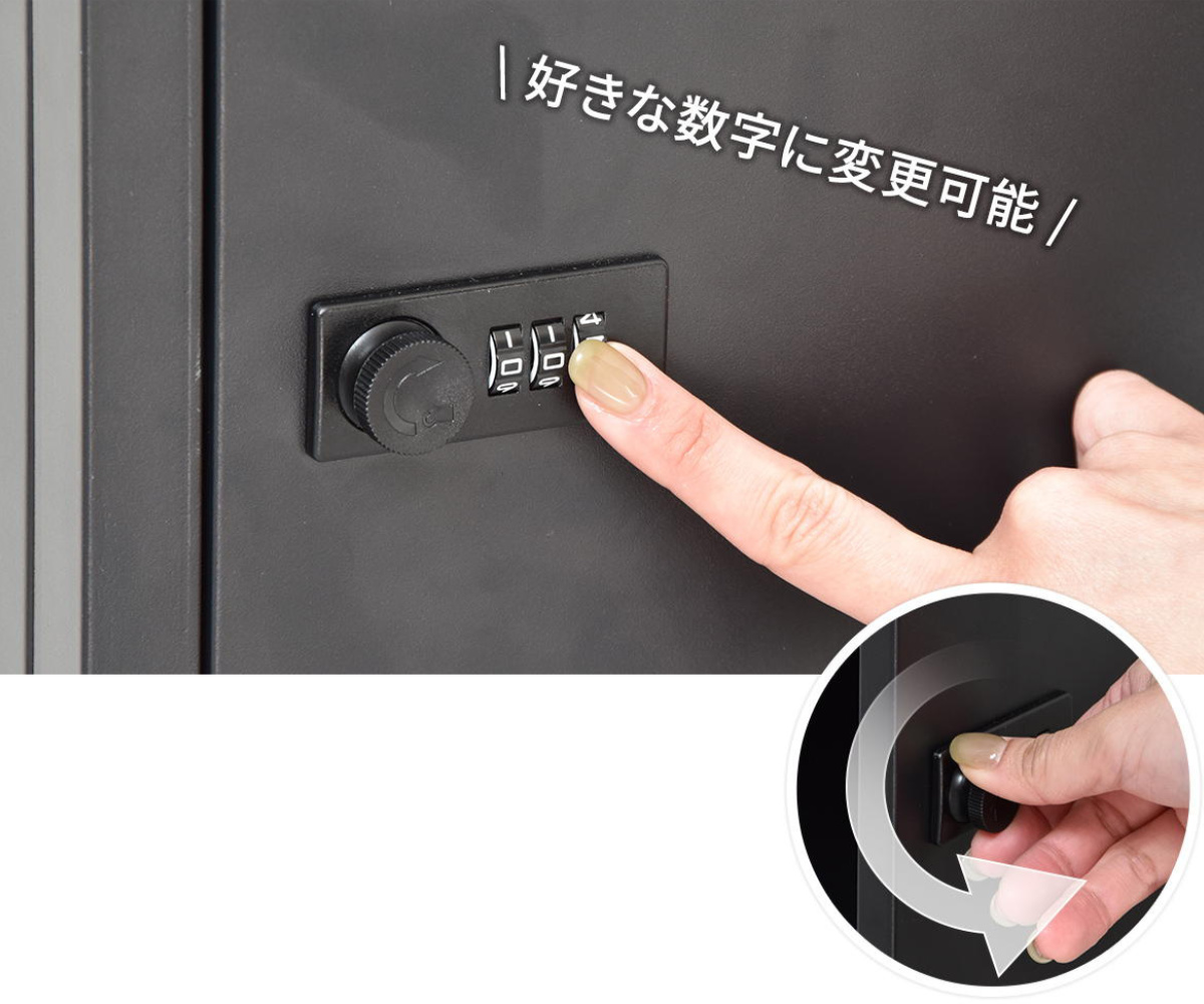ダイヤルロック式の扉でしっかり防犯。通帳や印鑑、鍵、薬など、みられたくないものを安心して収納できます。暗証番号はお好みの数字に自由に設定可能です。鍵を持ち歩く必要がなく、必要なときにサッと開けられます。数字を変更できるので、共有やセキュリティ管理にも安心です。
