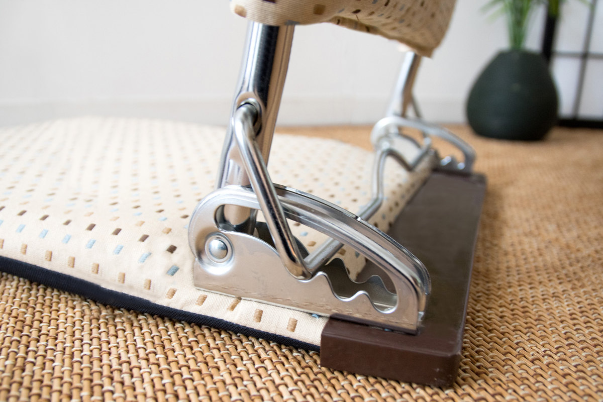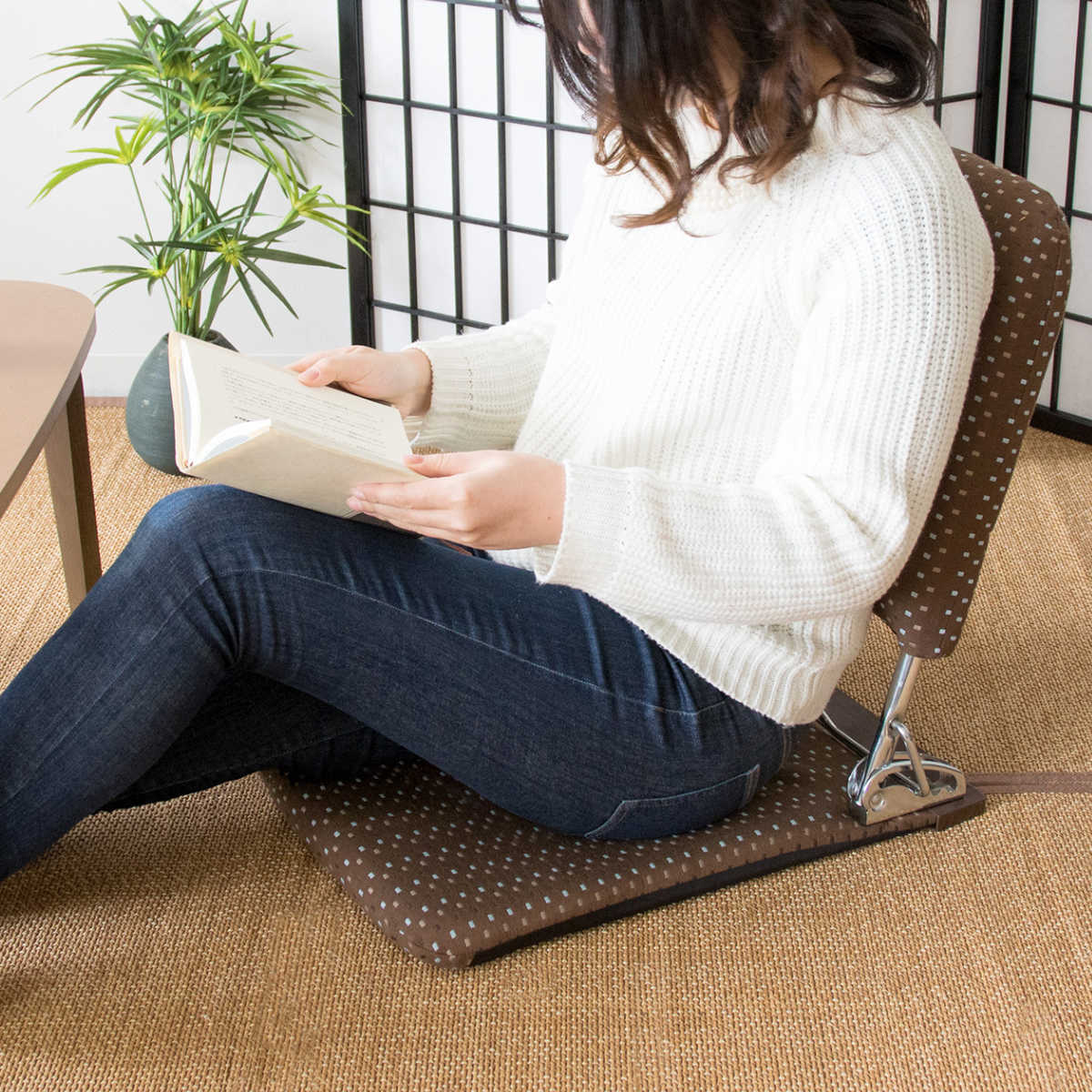 座面高約5cmの低い設計で床に座る感覚に近く、違和感なく使える座椅子です。高さがないため転倒の心配が少なく、こたつや座卓とも自然にフィット。床座りに慣れた方に安心してお使いいただける座椅子です。