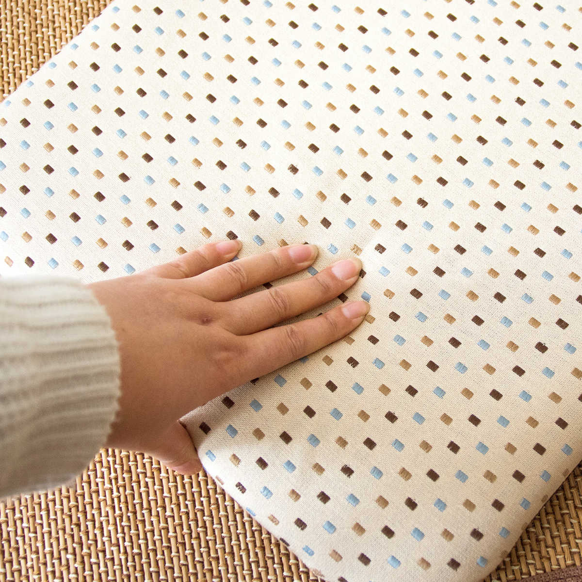 張地にはポリエステル・アクリル混のジャガード織生地を使用。落ち着いた風合いで、畳やフローリングの床にも自然になじみます。選べる3カラー展開で、お部屋の雰囲気に合わせて選べます。