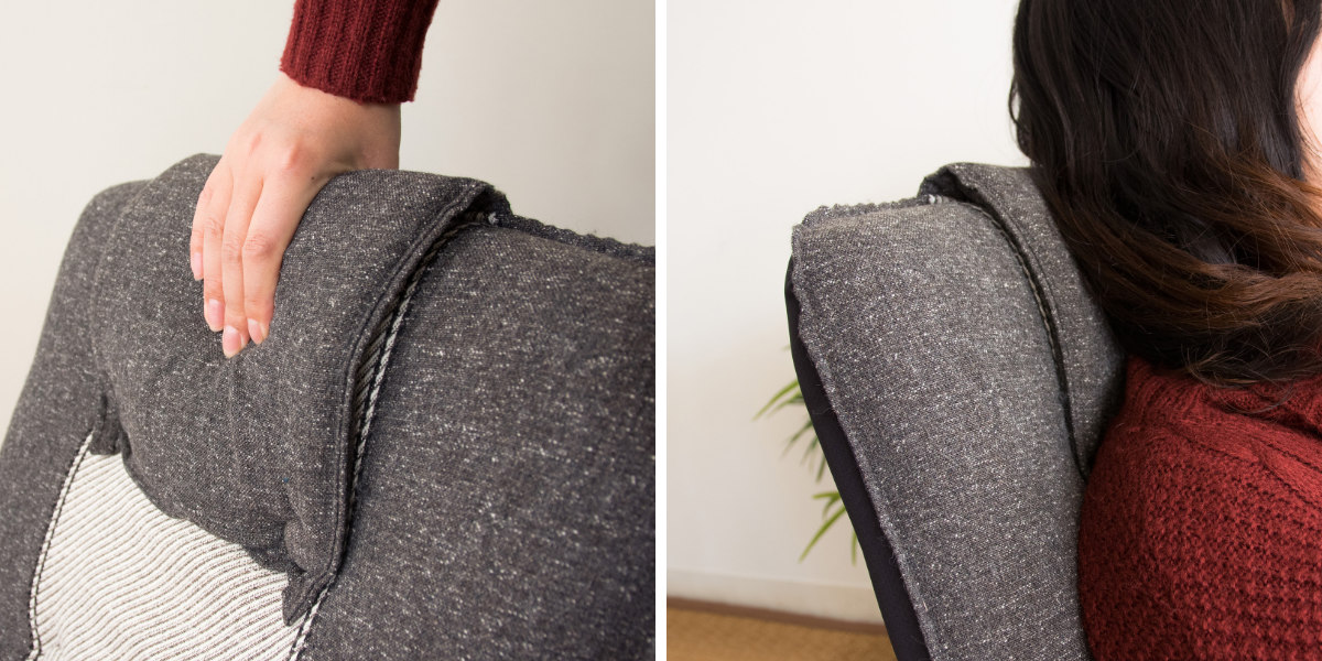 ●首部分にクッション付きの背もたれで、体をあずけて快適にくつろげます。