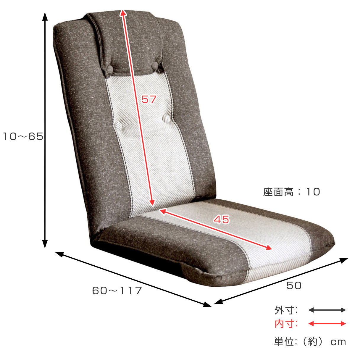- 約幅50×奥行60~117×高さ10~65cm