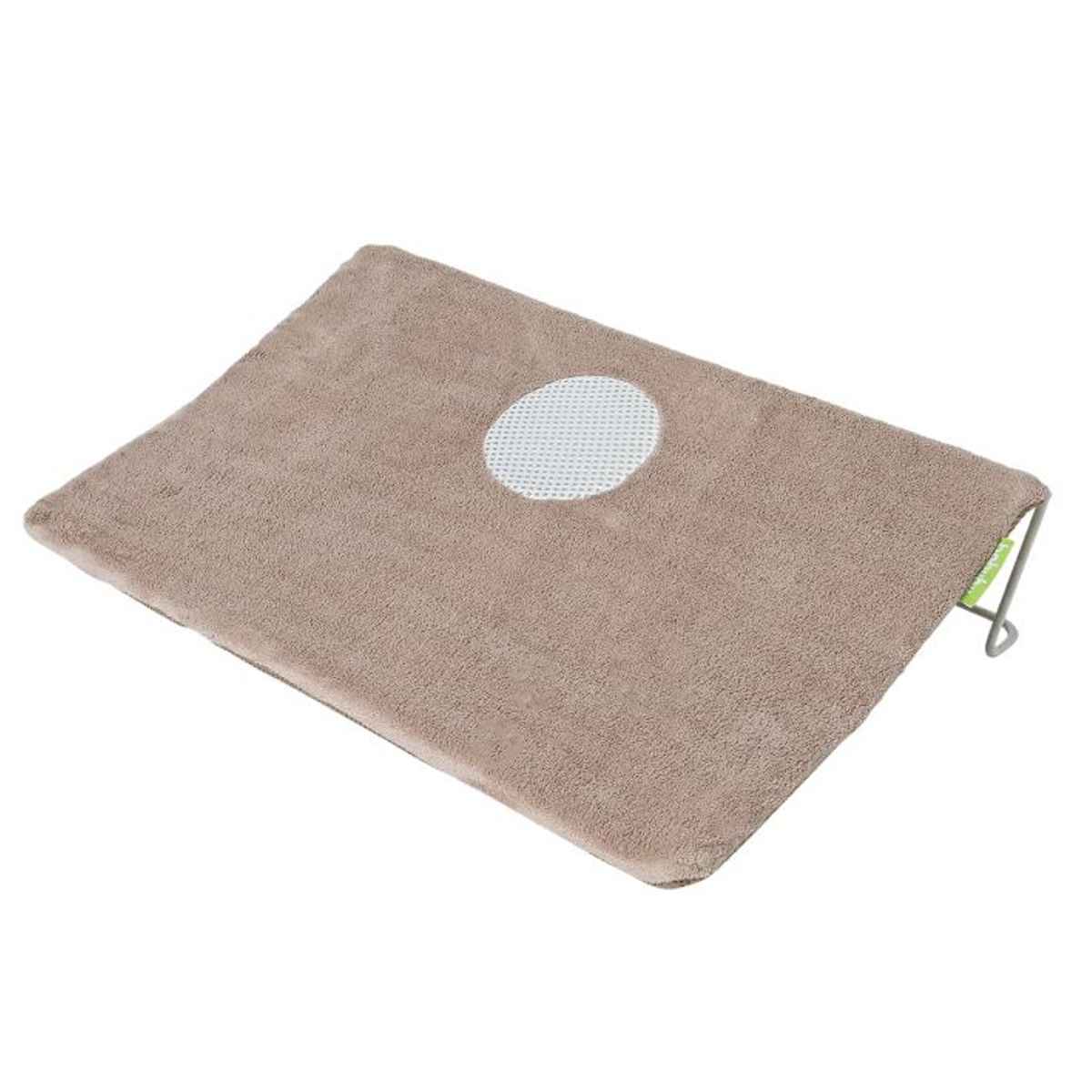 皮膚に触れる表地は、肌触りのやさしいベロア生地を採用しています。ファスナーで着脱して手洗いが可能なので、清潔に保つことができます。