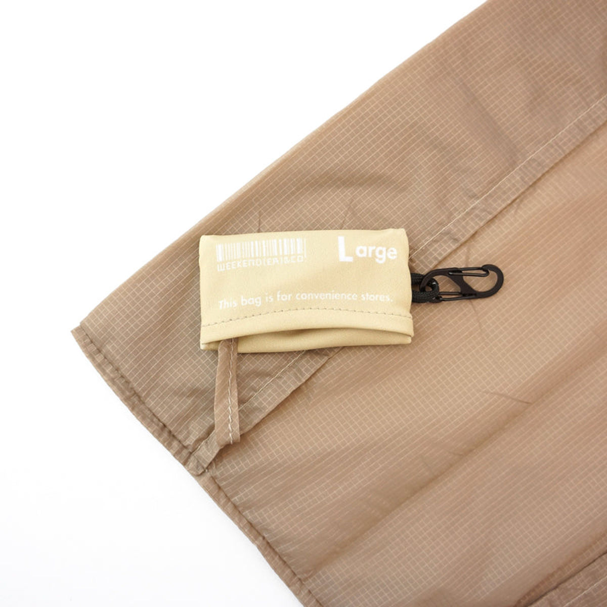 バッグの内側にポーチが付いているので、エコバッグを畳んでコンパクトに収納できます。収納ポーチは縫い付けられているので、紛失防止にもなります。