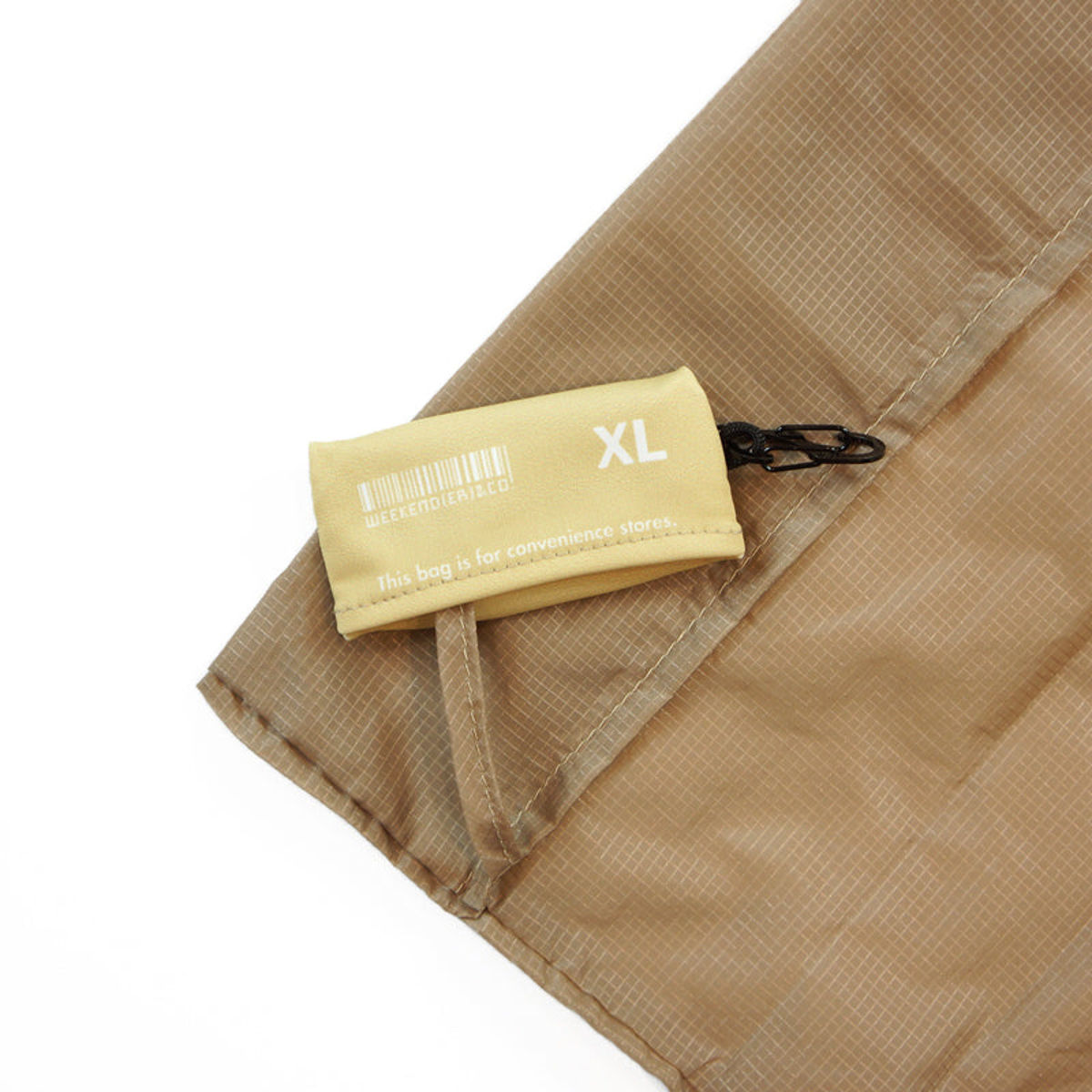バッグの内側にポーチが付いているので、エコバッグを畳んでコンパクトに収納できます。収納ポーチは縫い付けられているので、紛失防止にもなります。