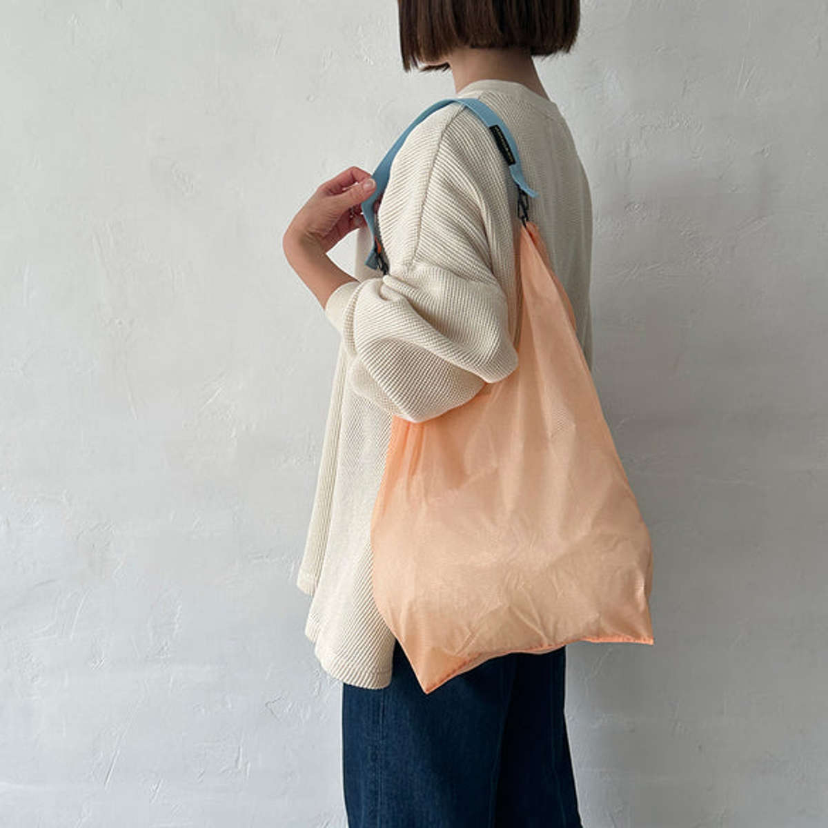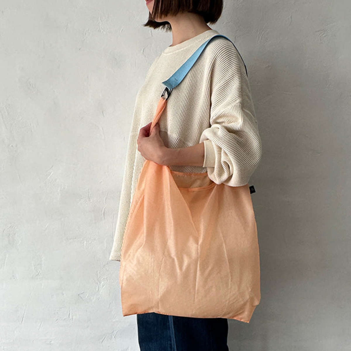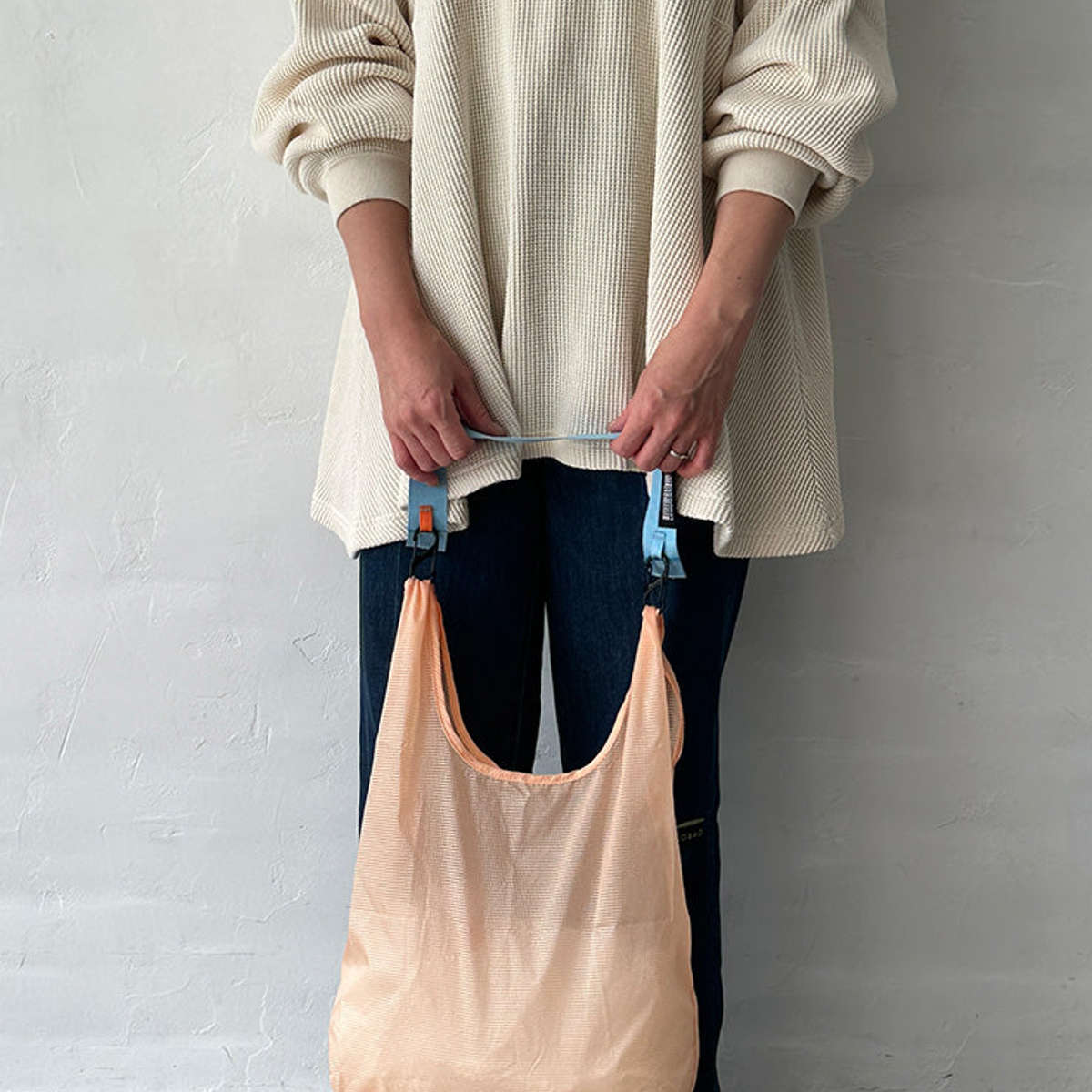 ストラップをバッグやベルトループに付けておくことで、HUNGBAGを常に携帯でき、エコバッグを忘れがちな人にも便利です。