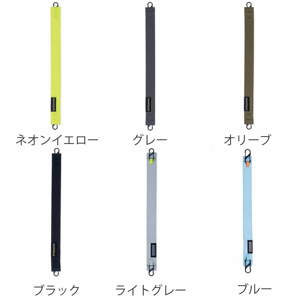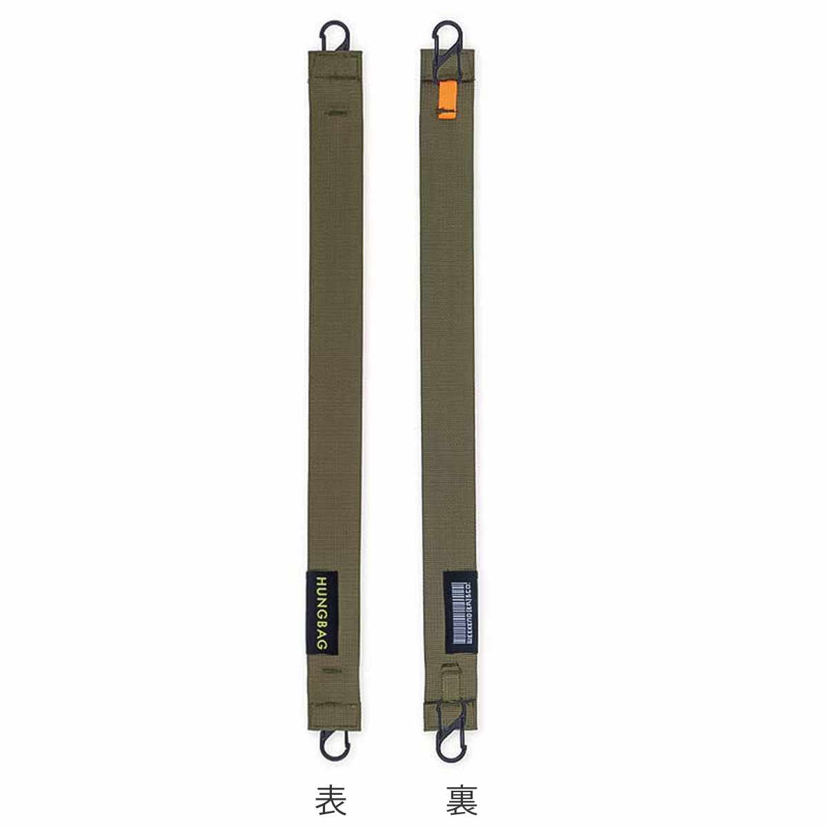 HUNGBAGのハンドルに簡単に連結でき、カラビナ付きで着脱もスムーズに行えるストラップです。