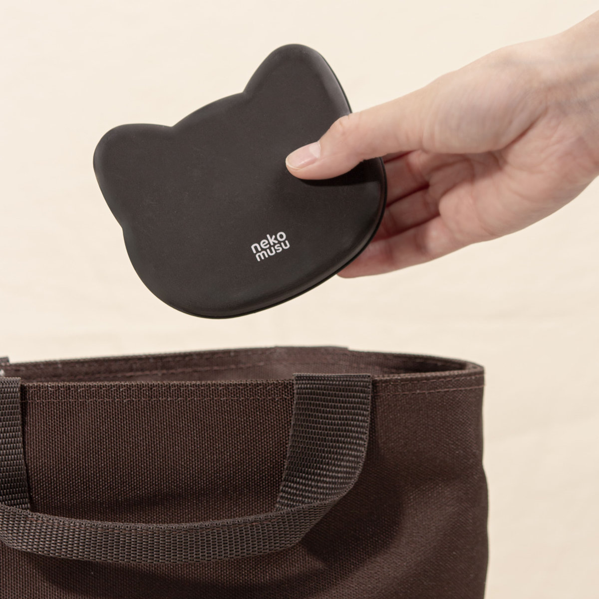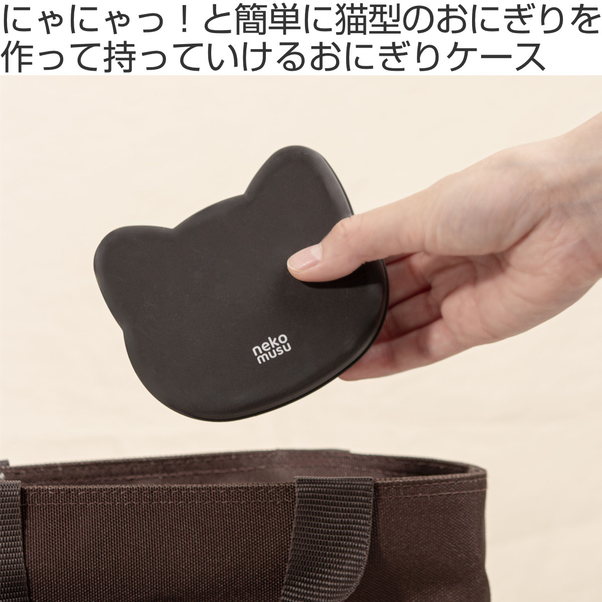 作ったおにぎりはケースごとバッグに入れることができます。本体、押し型、蓋には抗菌加工が施されており、暑い季節の持ち運びも安心です。また、BPAフリー素材を使用しています。
