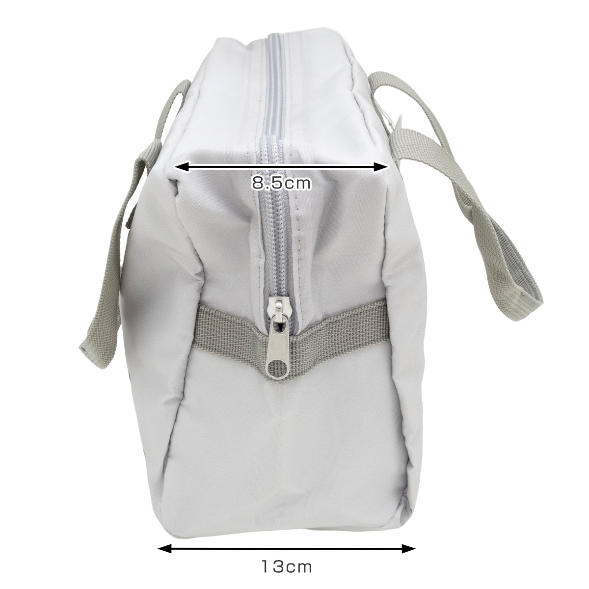 口が大きく開くようにファスナーはサイドまであります。マチが約13cmあるのでコンパクトながら、しっかり入り、お弁当箱の出し入れもラクにできます。