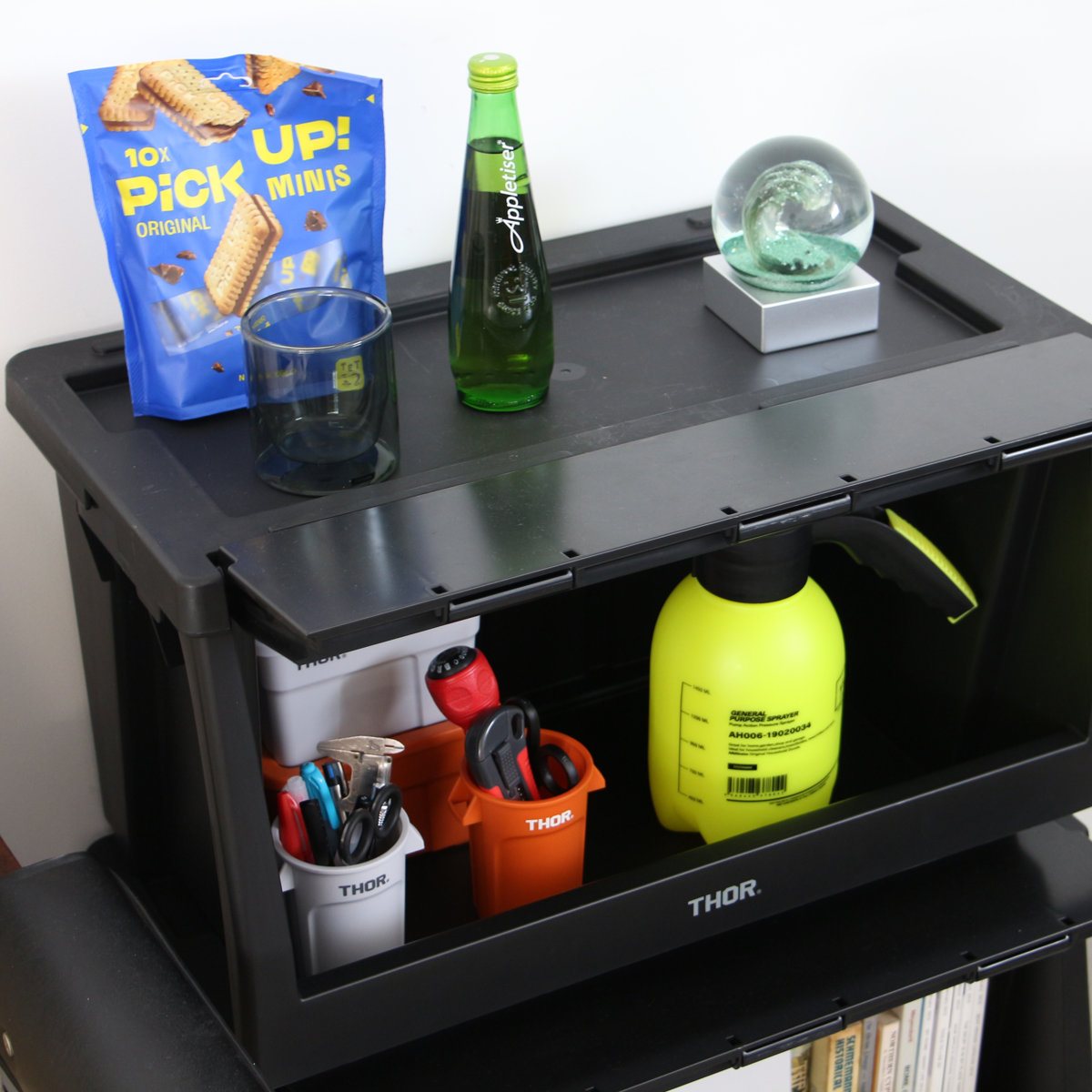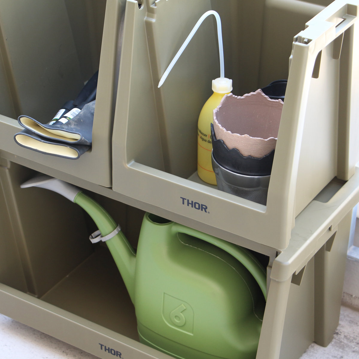 本体、 蓋、 扉を組み合わせて自分好みの棚を作ることができるTHORスタッキングシェルフコンテナの上蓋です。インテリアはもちろんキッチン周りやアウトドア・ガーデニングなど様々な場所で活躍します。