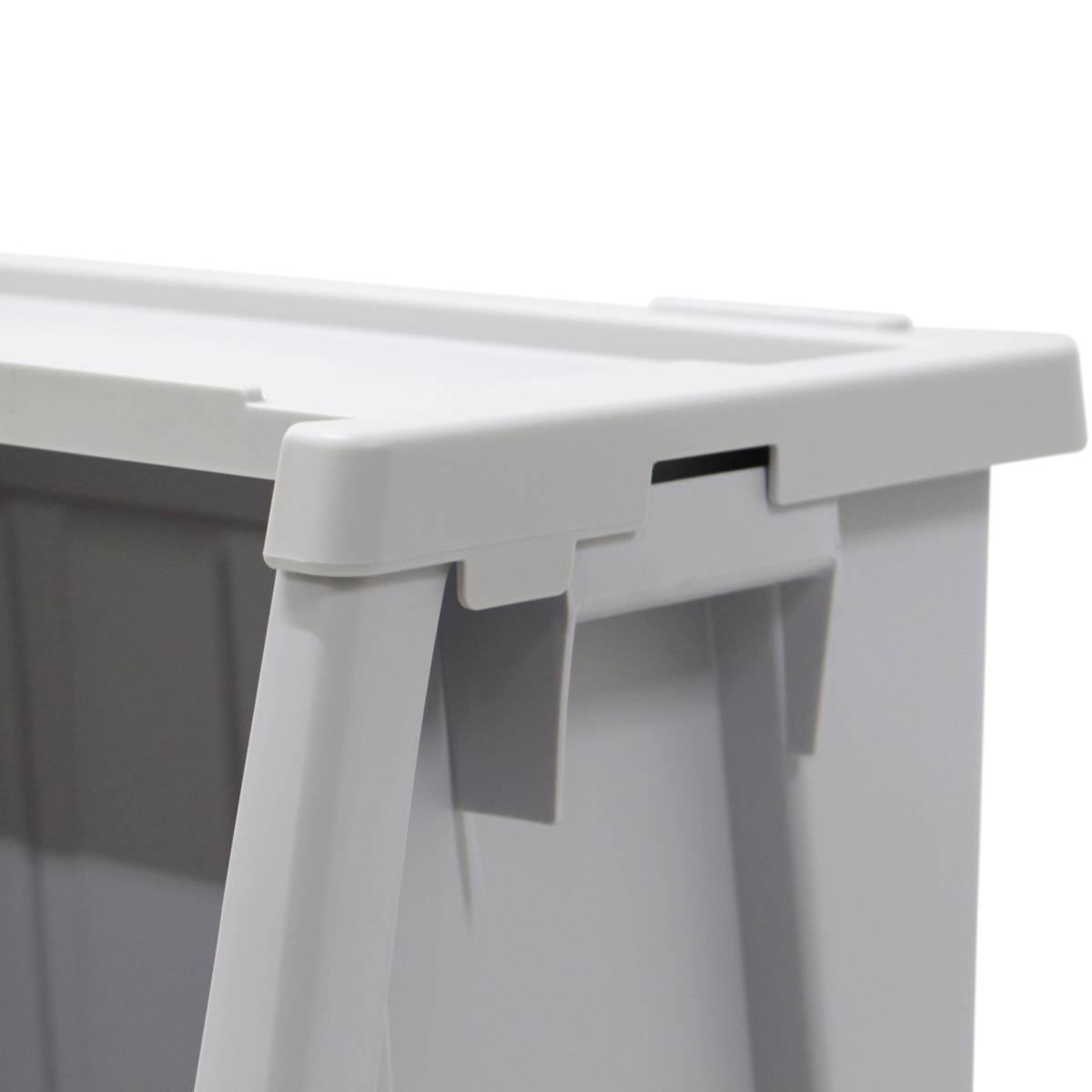 20L同士・50L同士の同じ本体サイズであれば本体のくぼみと脚部分が上下でジョイントする仕様なので、上蓋パーツがなくても直接積み重ねができます。省スペースで効率よく収納できる使い勝手の良さも魅力です。