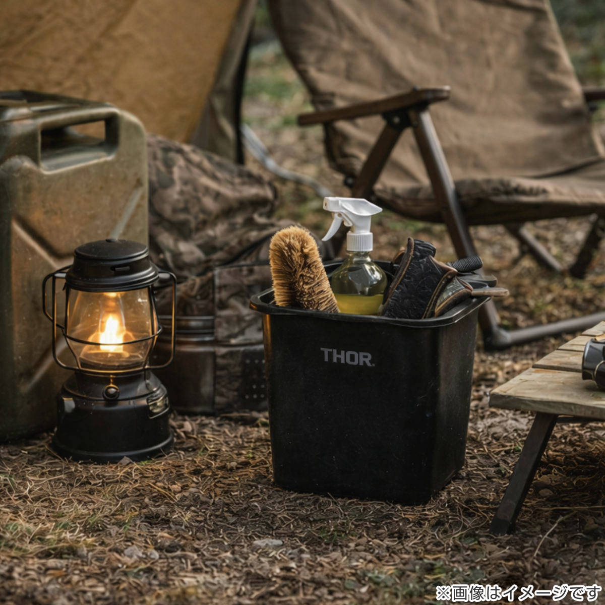 耐久性のあるポリプロピレン素材を使用しており、キャンプやバーベキューなどのアウトドアシーンでも活躍します。ギアやツールの持ち運び、洗い物用のバケツ、薪や小物の仮置きなど幅広い用途に対応。無骨でシンプルなデザインは、アウトドアギアとも相性が良く、屋外でも気兼ねなく使える実用性の高いアイテムです。