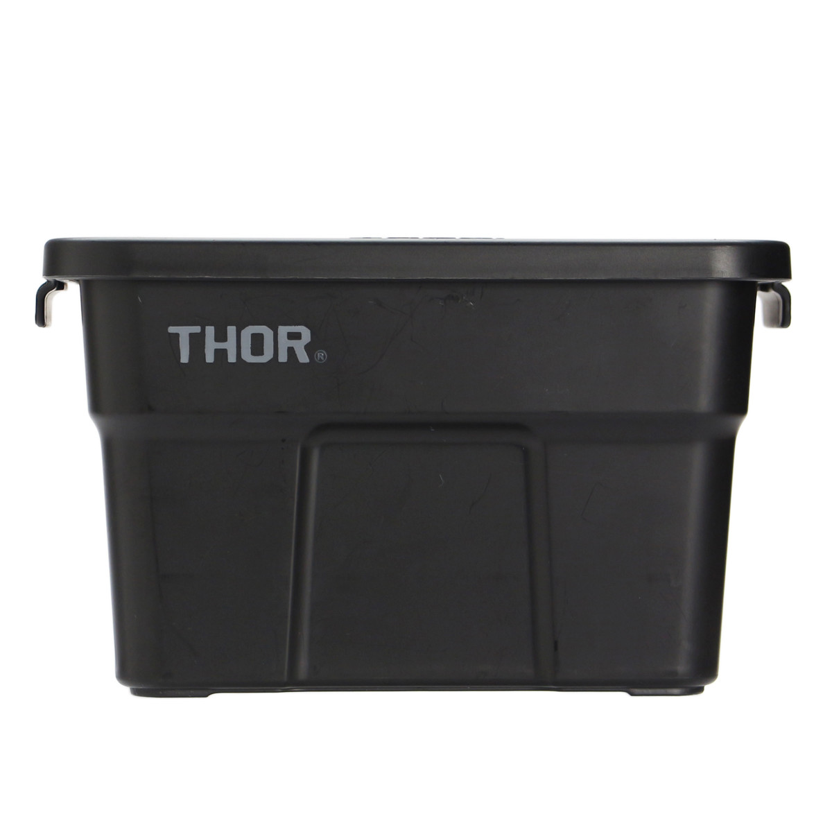 ボックスの側面とフタにはTHORのロゴが入っています。無骨で洗練されたデザインが、収納アイテムでありながらインテリアとしても映えるポイントです。