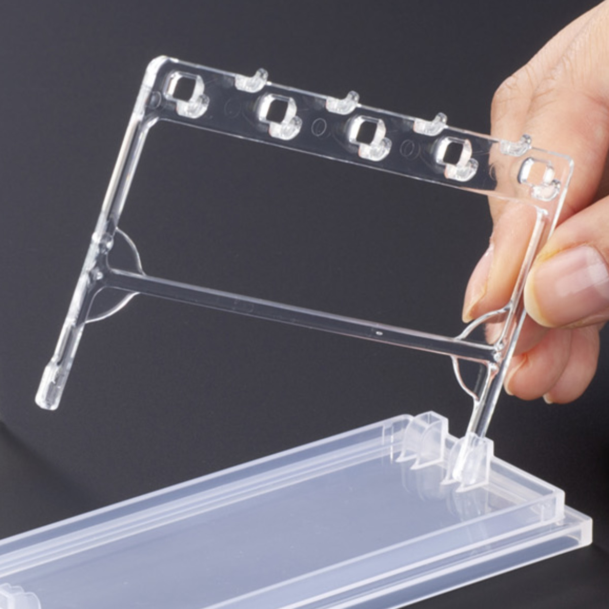 フックパーツを後方に取り付けることで、厚みのあるキーホルダーやミニフィギュアの展示にも対応しています。チャーム以外の小物ディスプレイにも活躍します。