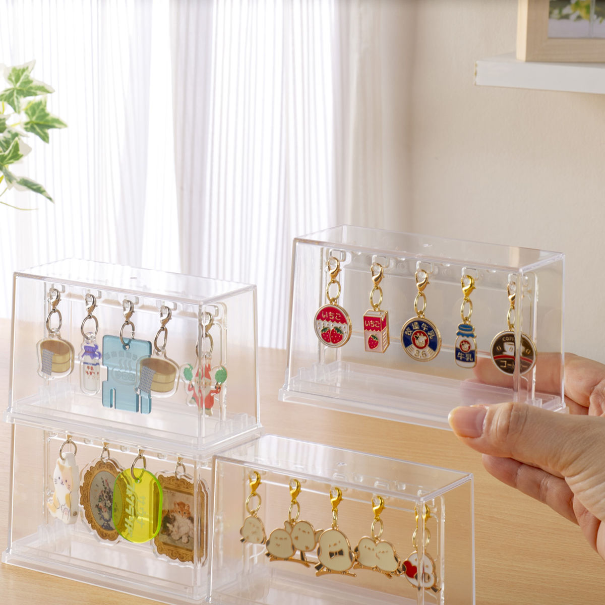 ミニチャームやマスコットをフックに掛けてすっきり飾れるディスプレイケースです。小さくて絡まりやすいチャーム類も、正面から見やすくコレクションできます。