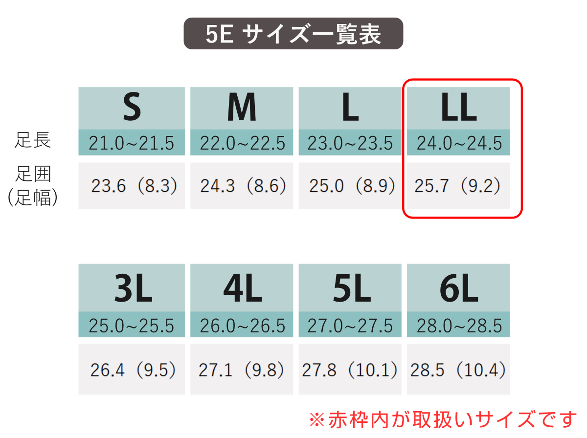 ![]() 両足5E S~5L | ![]() 左足5E LL 【▲このページの商品】 |