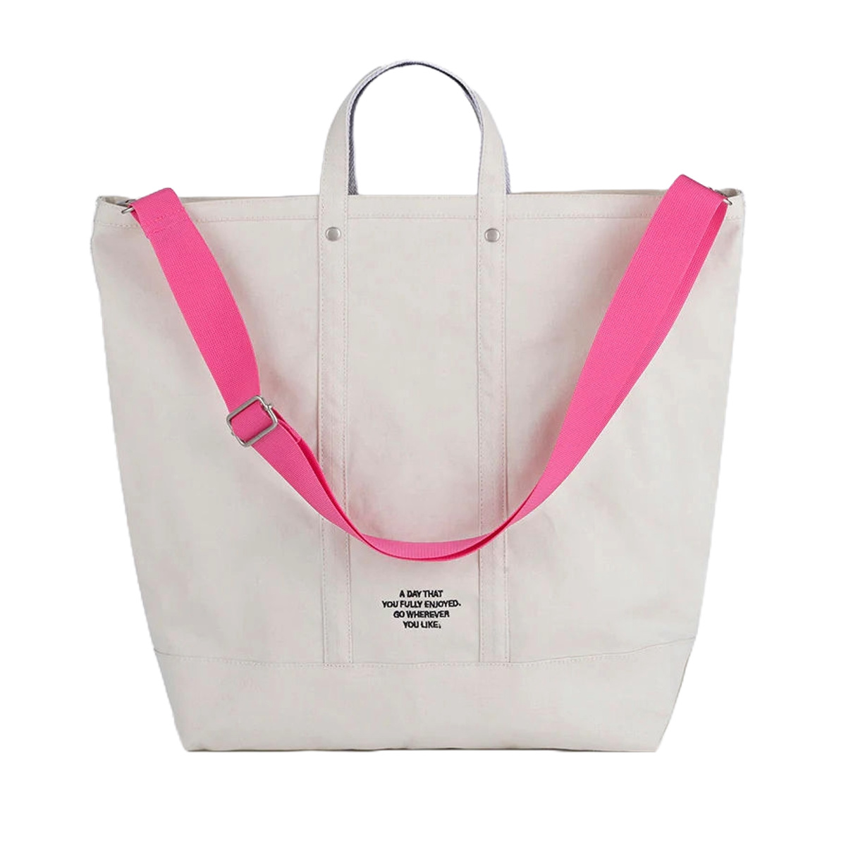バイカラーが映える、男女問わず使いやすいトートバッグです。ショルダーベルトを取り外して手提げにもなる2WAY仕様。その日の気分やコーディネートに合わせて持ち方を変えられます。