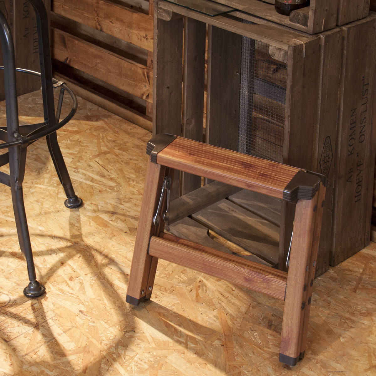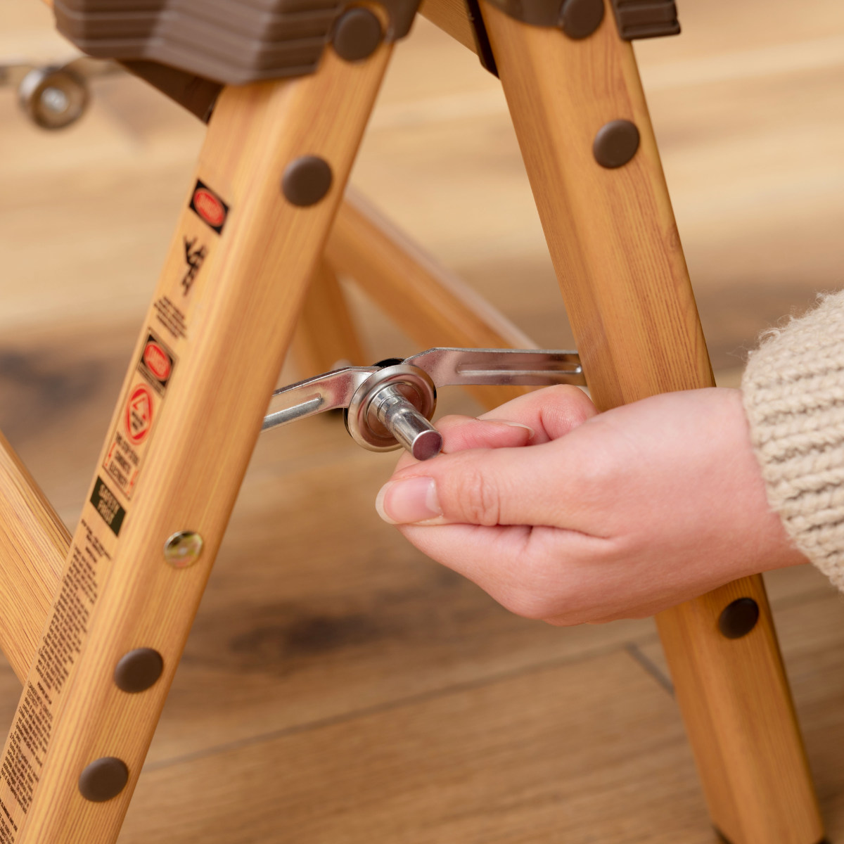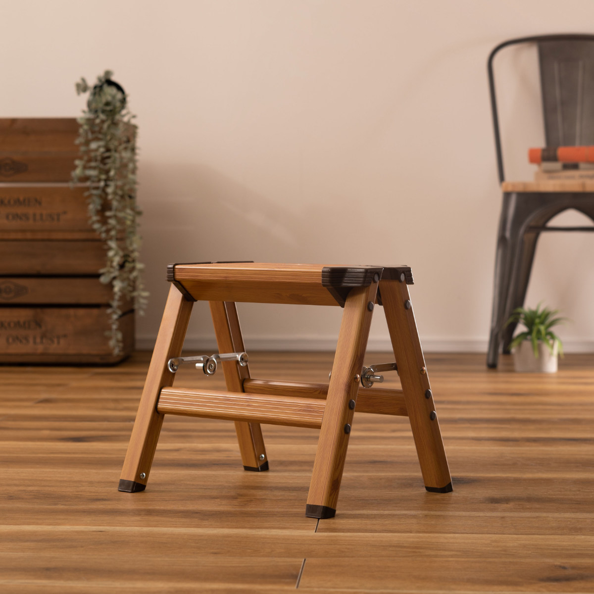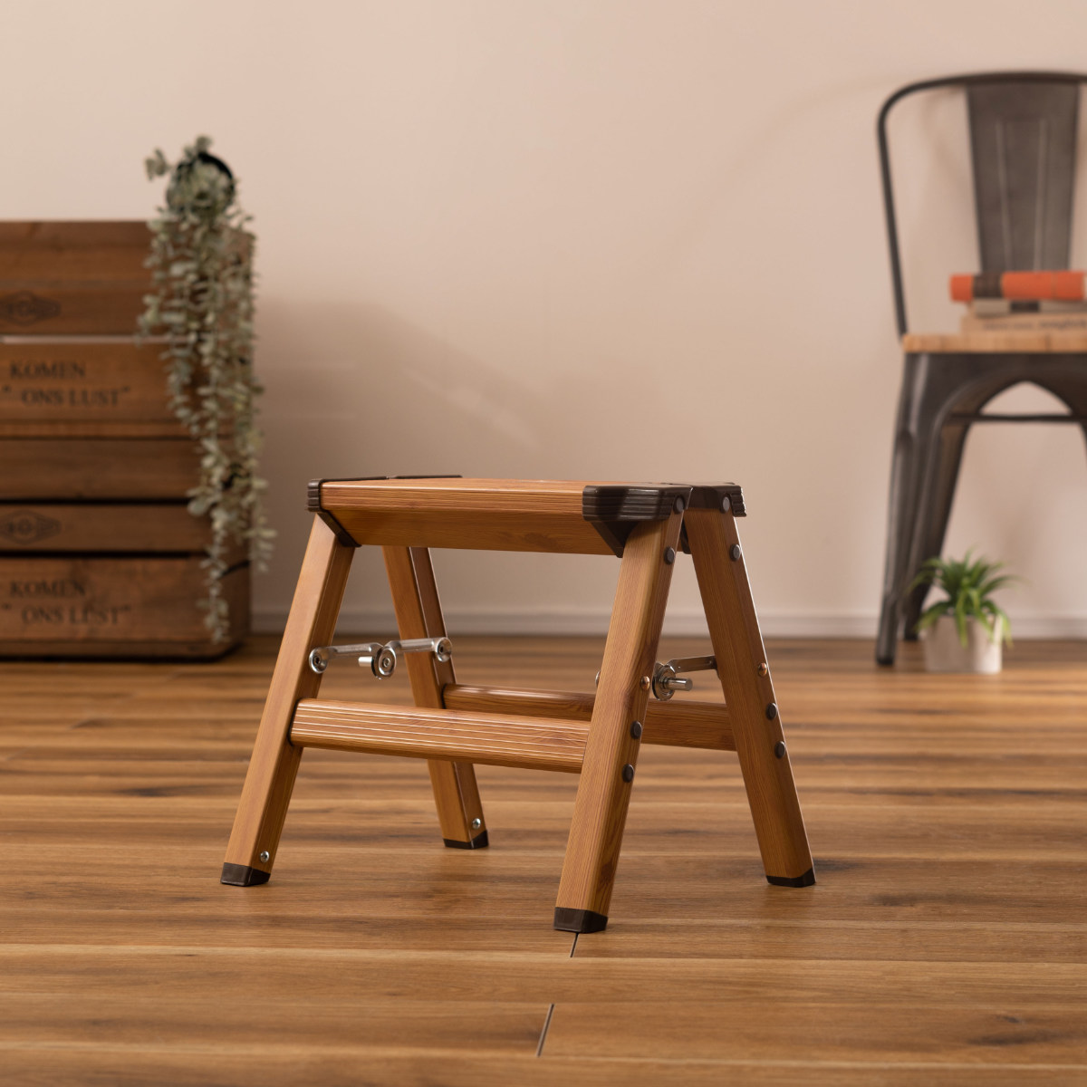 アルミ製で軽く扱いやすいのに、見た目はあたたかみのある木目調仕上げのスツールです。無機質になりがちな脚立の印象をやわらげ、インテリアにも自然になじむデザインです。