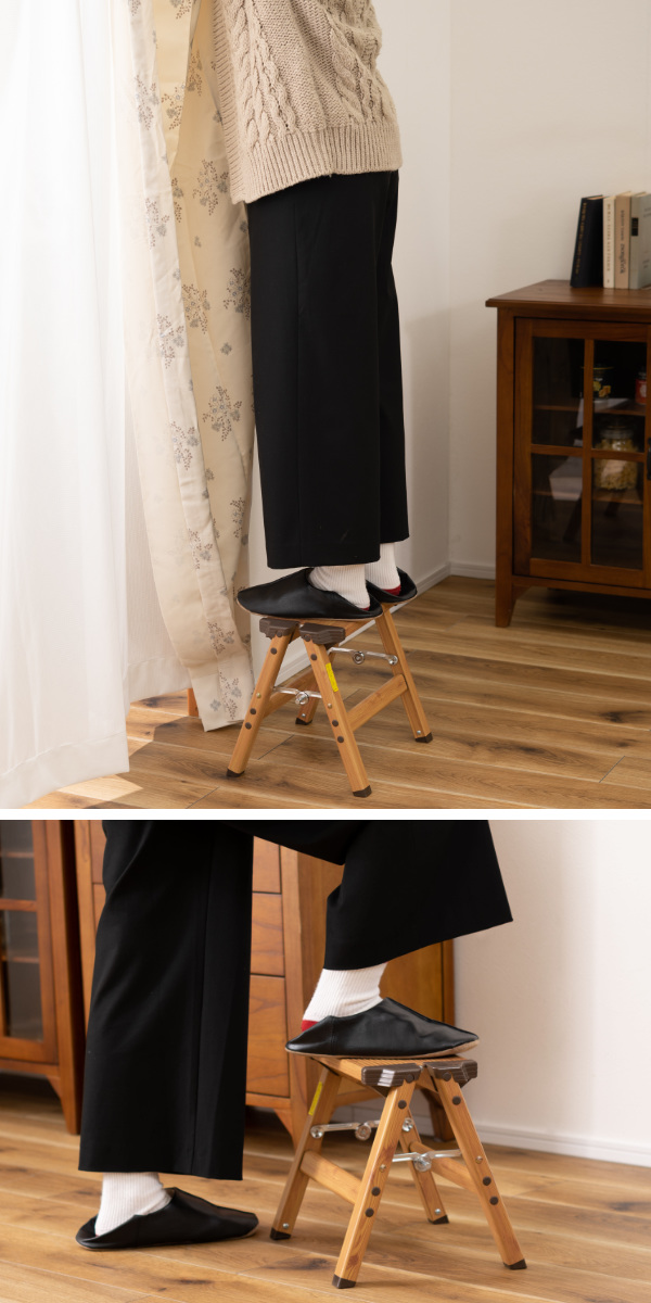 電球交換や棚上の出し入れなど、少し手が届きにくい場所で活躍。安定感のあるステップで、日常のちょっとした高所作業をサポートします。