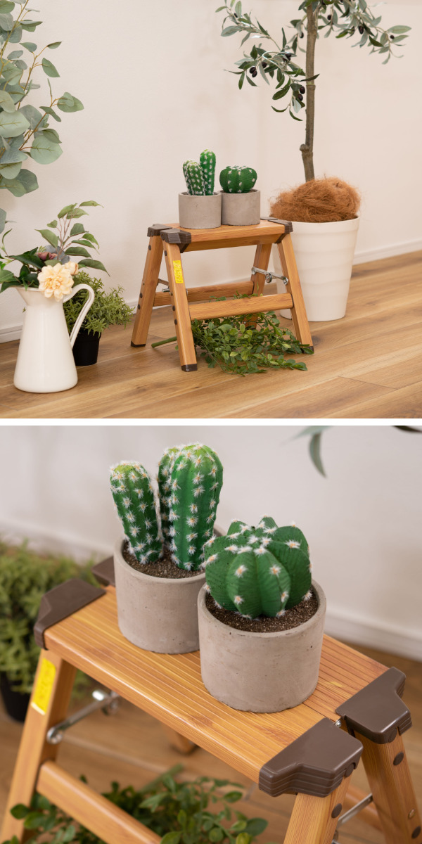 植物やグリーンとの相性がよく、花台として使えば空間に立体感をプラス。高さを出したディスプレイが楽しめ、インテリアのアクセントとしても活躍します。