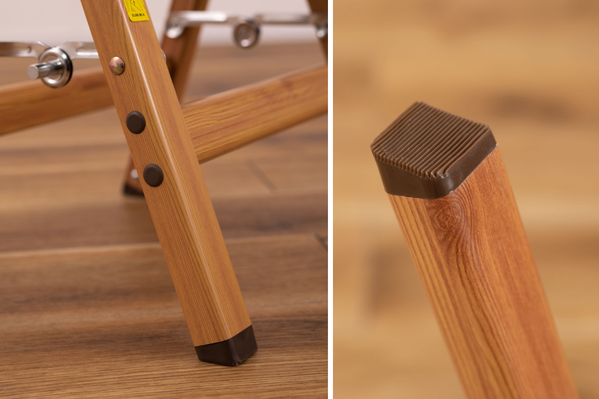 足裏は滑りにくく安定感を高めるゴム製になっています。同時に床へのキズを軽減する役割もあり、室内でも安心して使いやすい配慮設計です。
