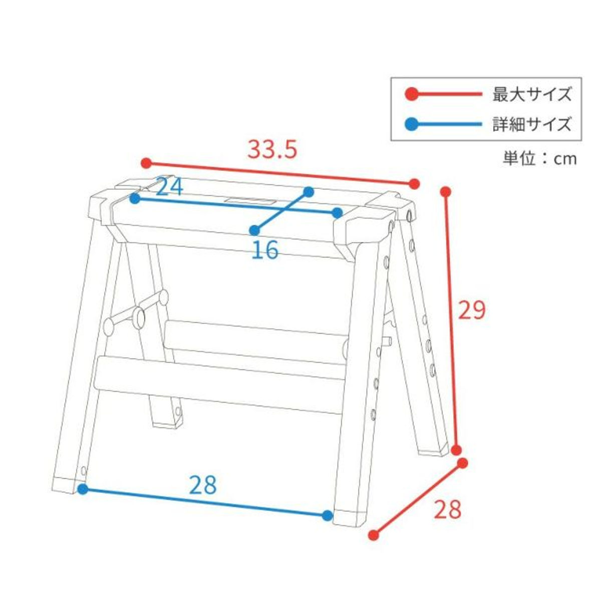 | サイズ | 約 幅33.5×奥行28×高さ29(cm) ステップサイズ:約 幅24×奥行16cm |