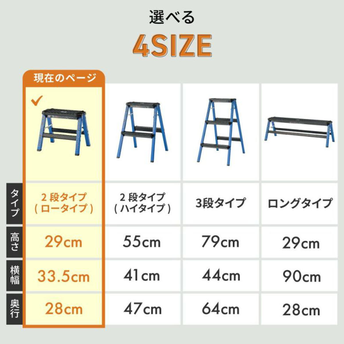 ![]() 脚立 2段(高さ29cm) 【▲このページの商品】 | ![]() 脚立 2段(高さ55cm) | ![]() 脚立 3段(高さ79cm) |