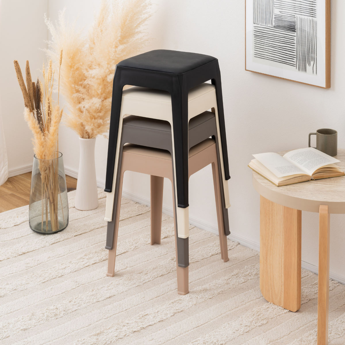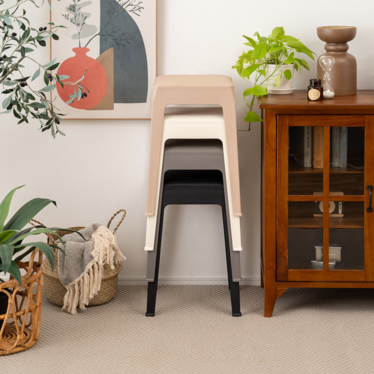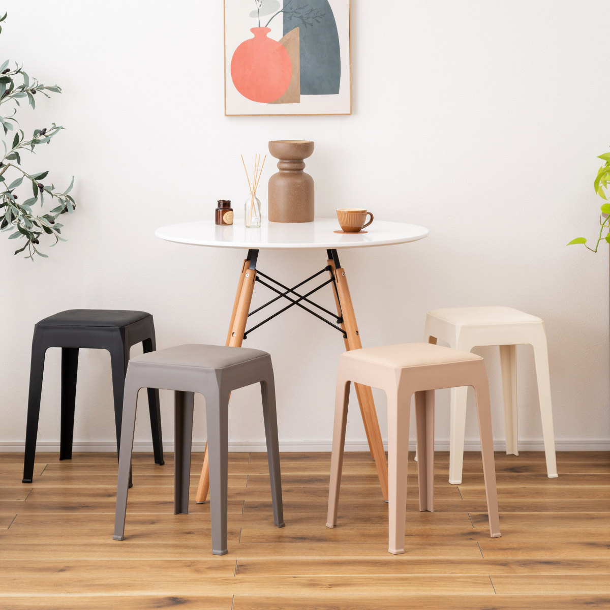 くすみカラーが可愛いシンプルデザインのスタッキングスツール