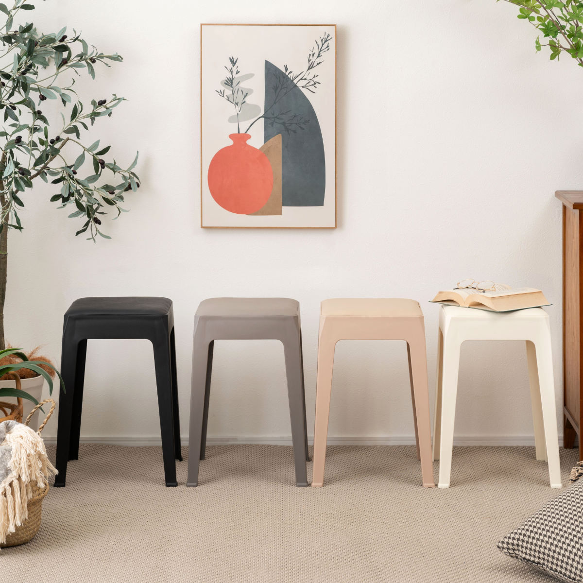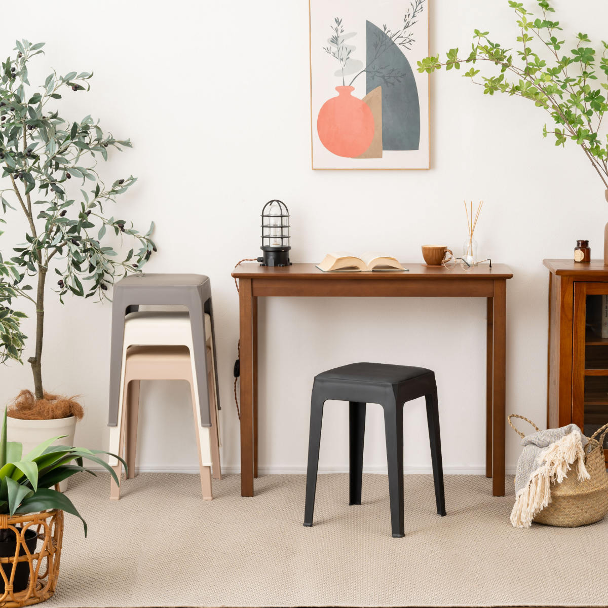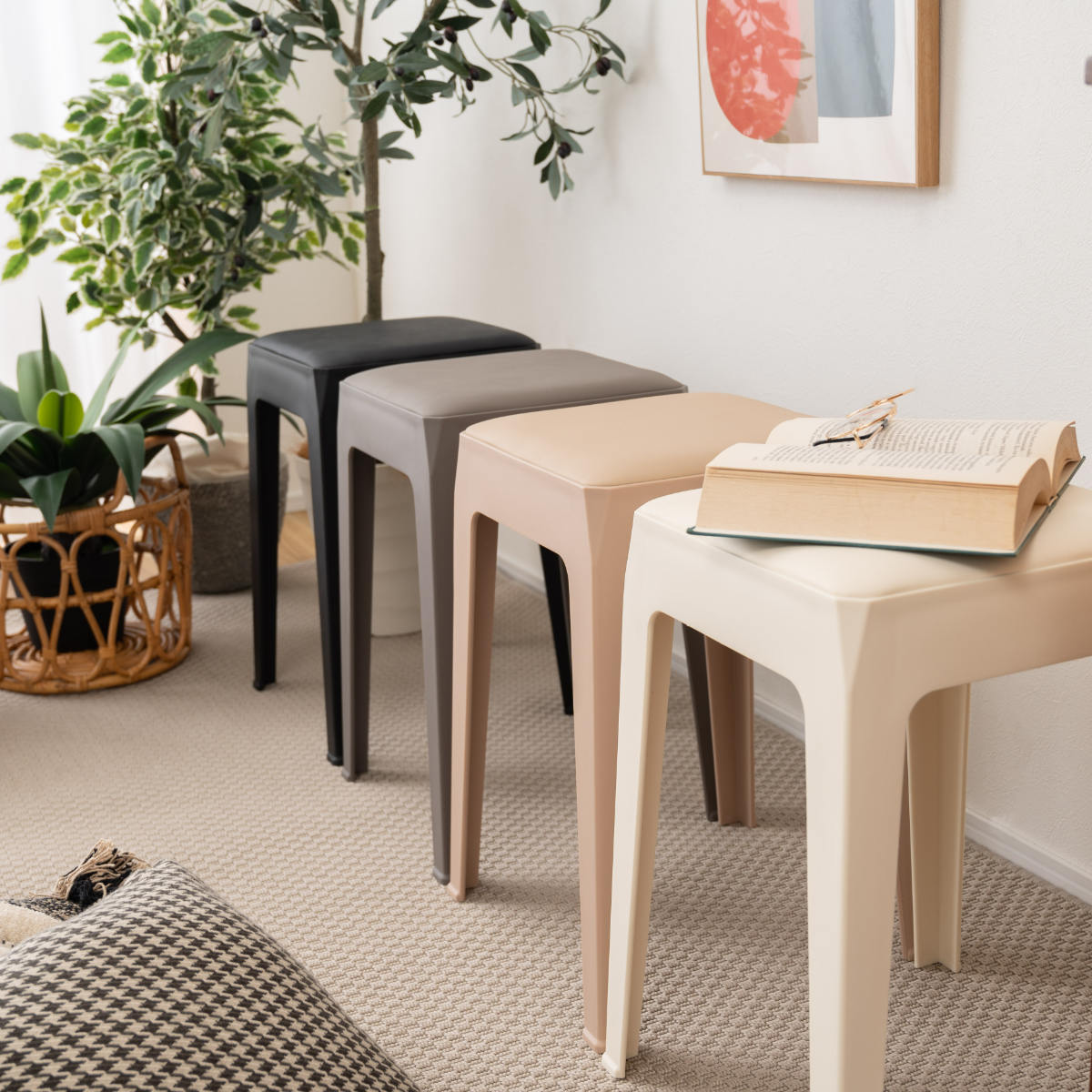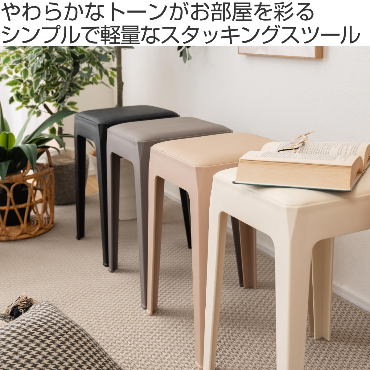 くすみカラーが可愛いシンプルデザインのスタッキングスツール