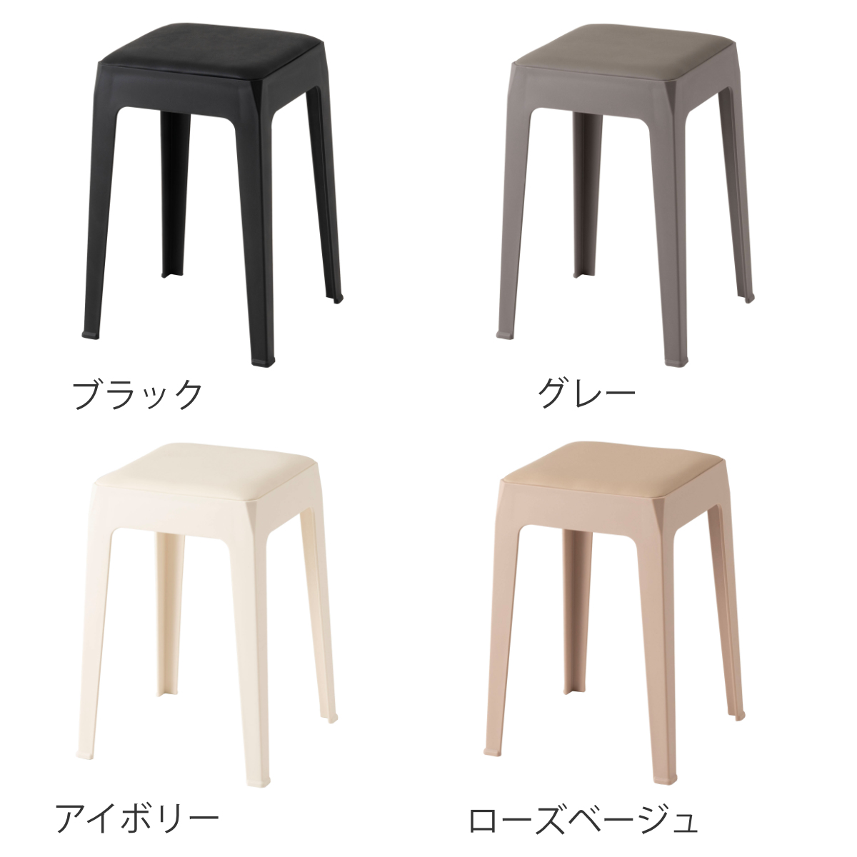 カラーはブラック、グレー、アイボリー、ローズベージュの全4色。やさしいニュアンスカラーと空間を引き締めるブラックを揃え、お部屋のテイストに合わせてお選びいただけます。