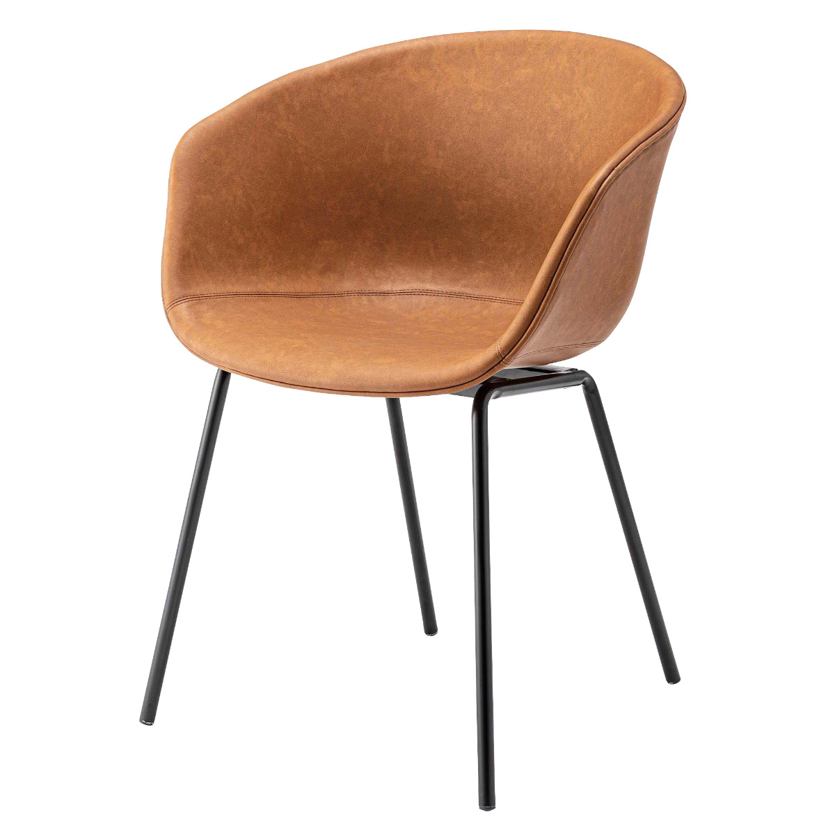 華奢でスタイリッシュなスチール脚が全体をすっきりとした印象に。重たく見えがちなアームチェアも軽やかにまとまり、ダイニングやワークスペースにも取り入れやすいデザインです。