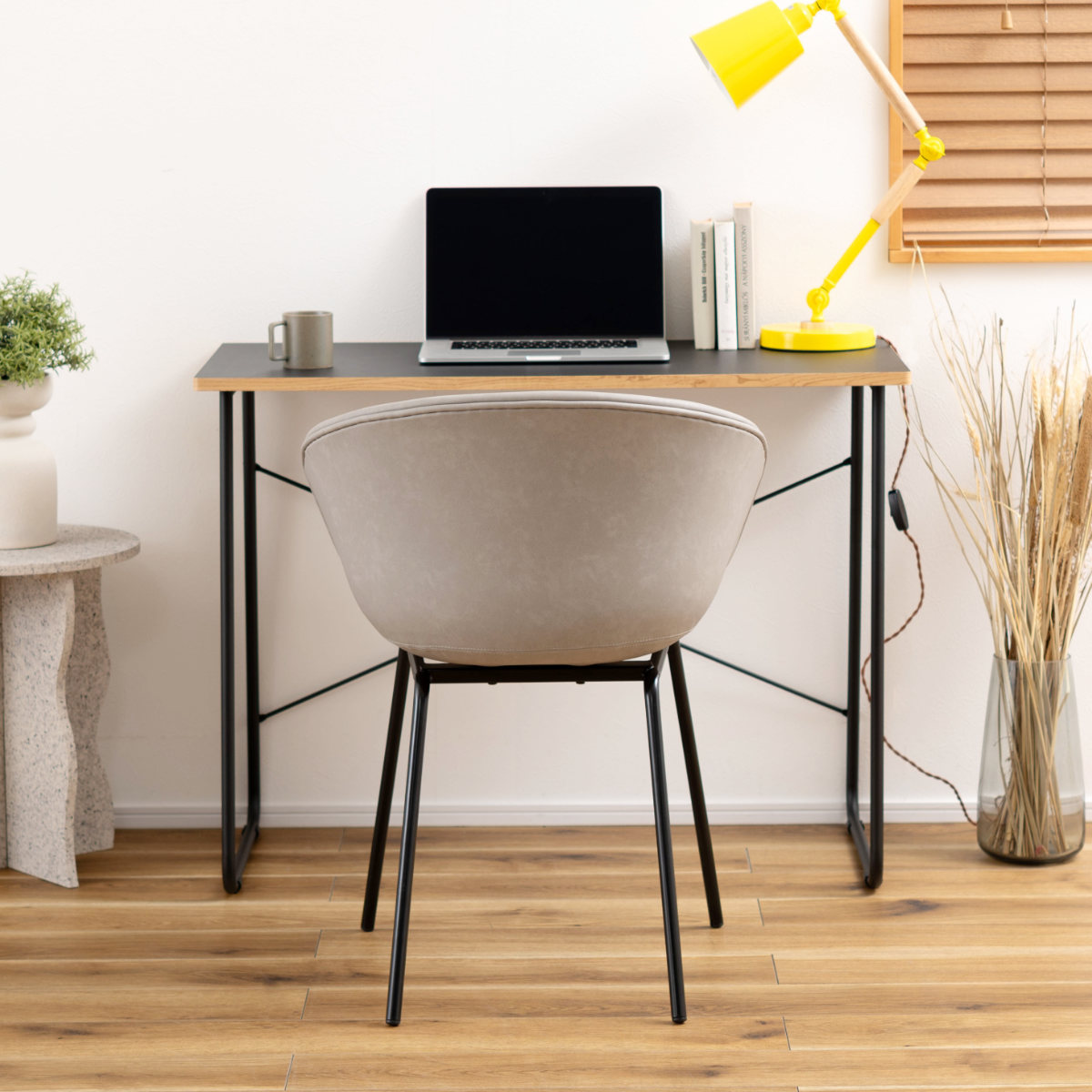 デスクチェアとしても活躍。肘掛け付きで腕を預けられるため、在宅ワークや作業時の負担を軽減し、集中しやすい環境を整えます。