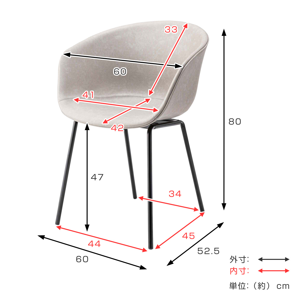 | サイズ | 約 幅60×奥行52.5×高さ80(cm) 座面高:約 47(cm) |