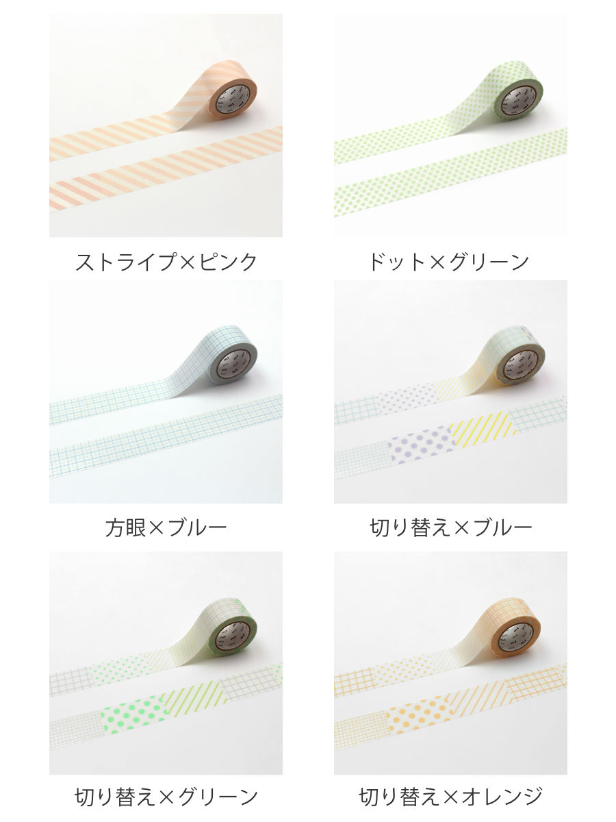 | 種類 | ストライプ×ピンク、ドット×グリーン、方眼×ブルー、切り替え×ブルー、切り替え×グリーン、切り替え×オレンジ |