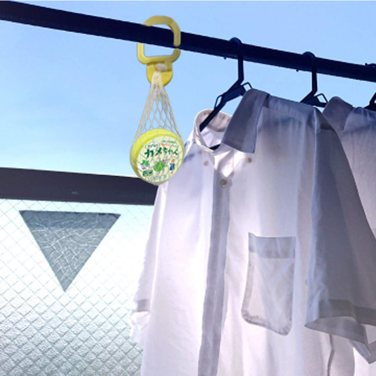 ミントの香りでカメムシを寄せ付けにくくする忌避剤です。大きめのフック付きで、物干し竿やフェンス、手すりなど、さまざまな場所に掛けやすい設計。ベランダやお庭、玄関、勝手口など、気になる場所に掛けるだけで手軽に設置できます。カメムシ特有の不快なニオイに悩まされる前の対策として使えます。