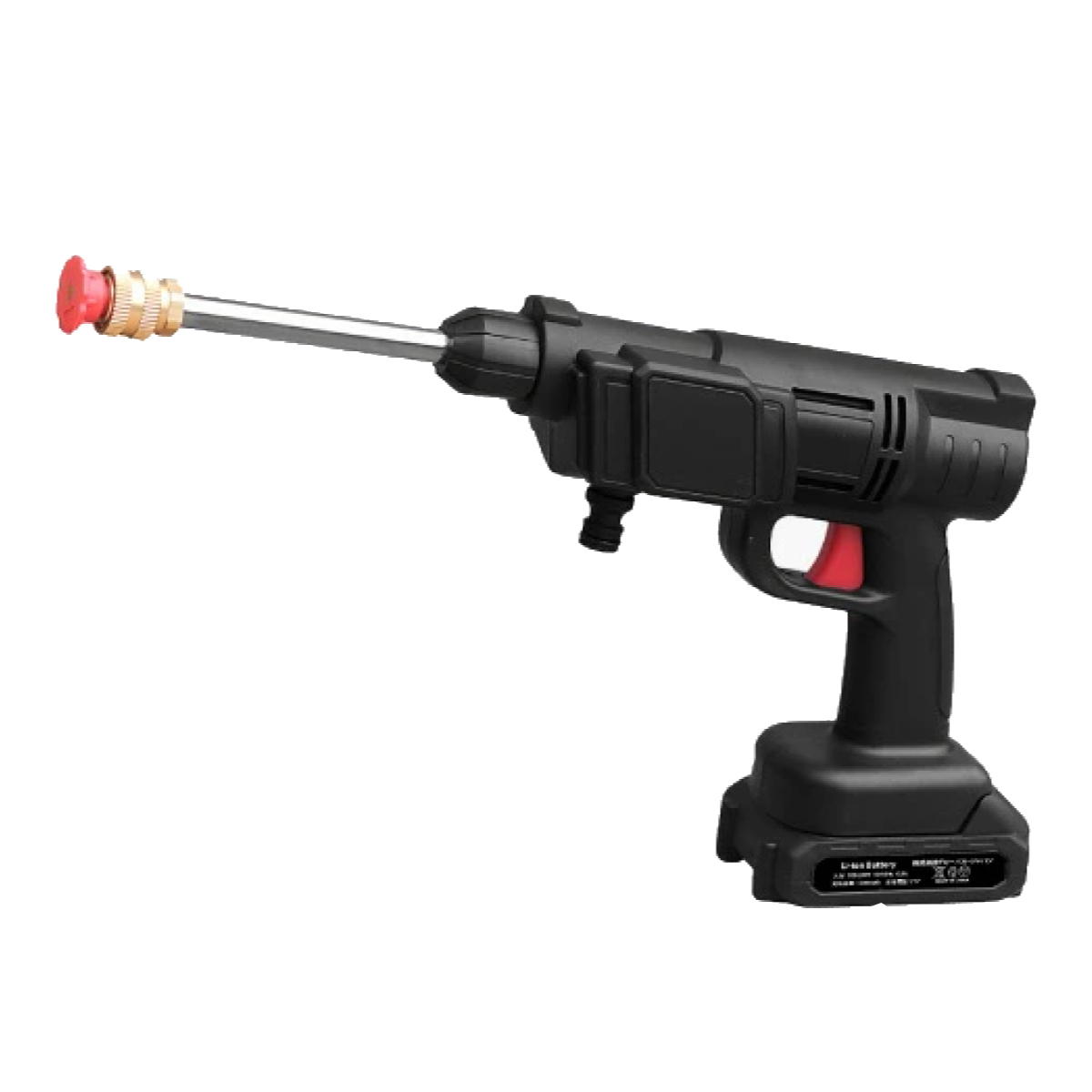 バケツと本体を用意するだけで使えるコードレス高圧洗浄機「マジカルウォッシュ」の交換用バッテリーです。