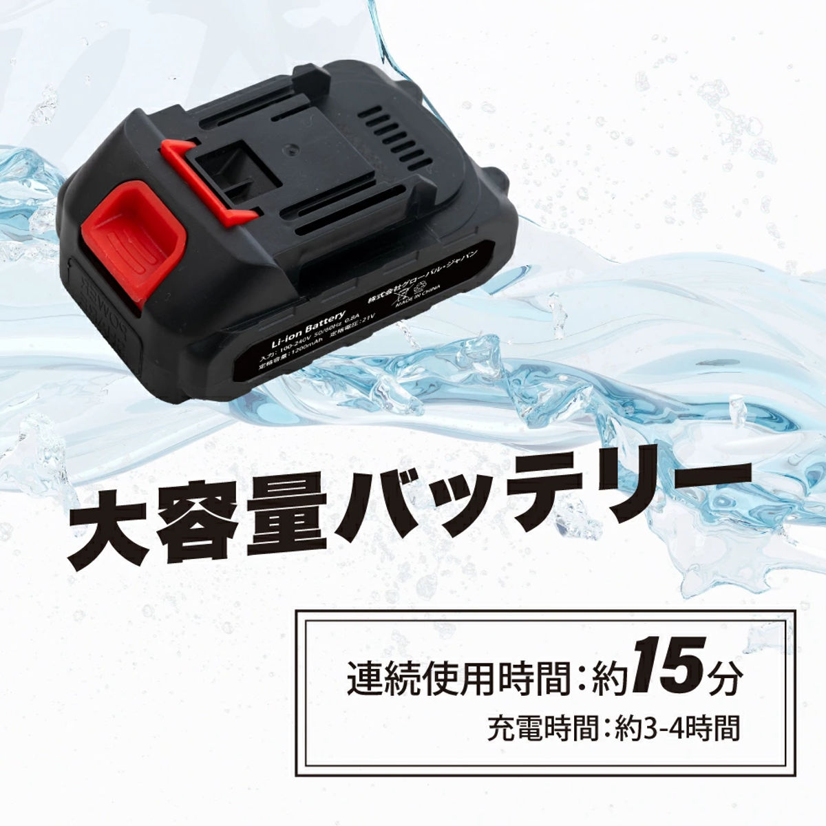 | 備考 | ・リチウムイオン電池:1200mAh×5本 ・充電時間:約3~4時間 ・稼働時間:約15分 |