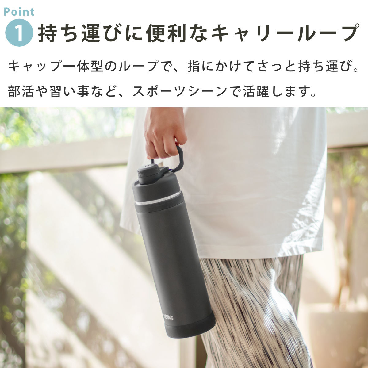 持ち運びやすいループ付きスポーツボトル