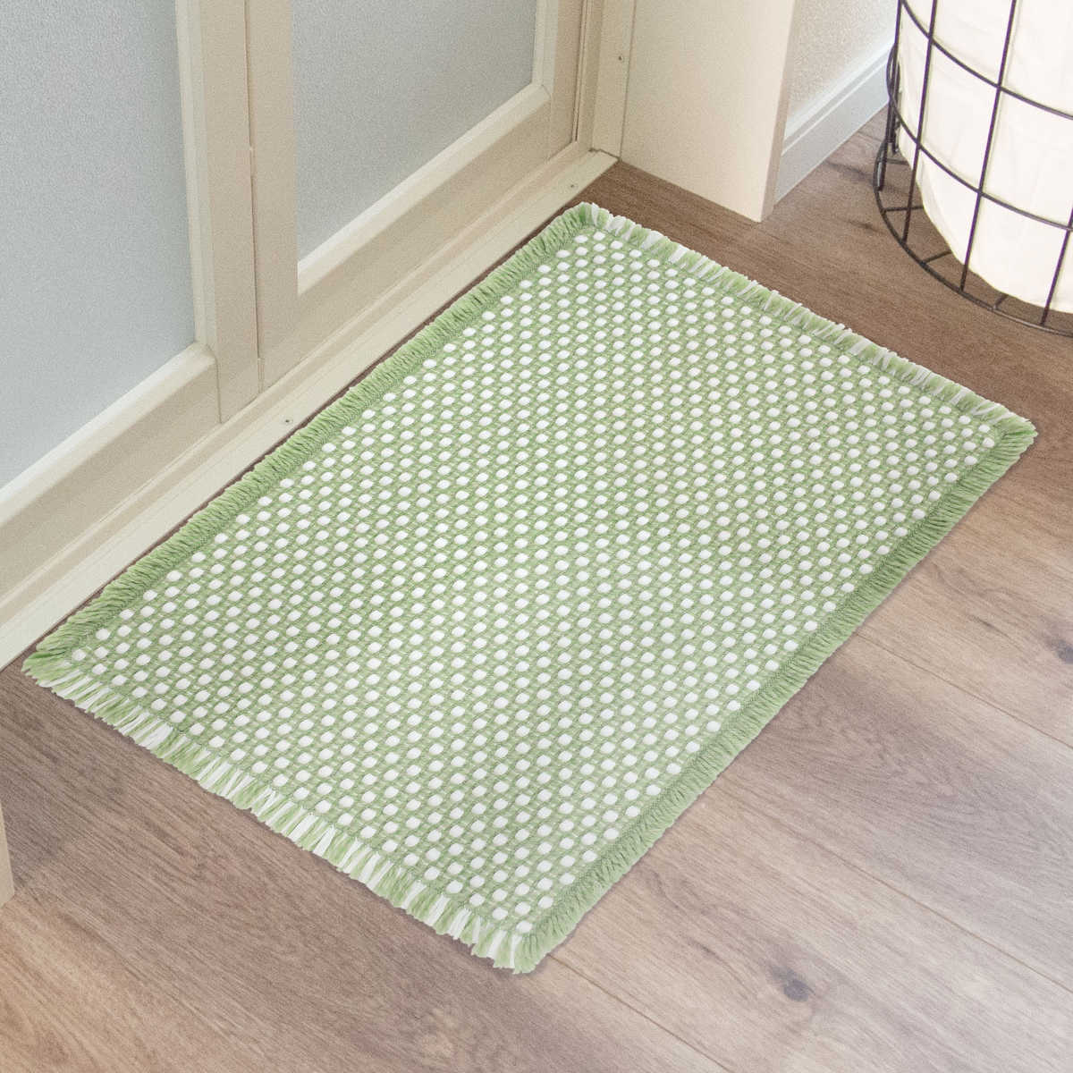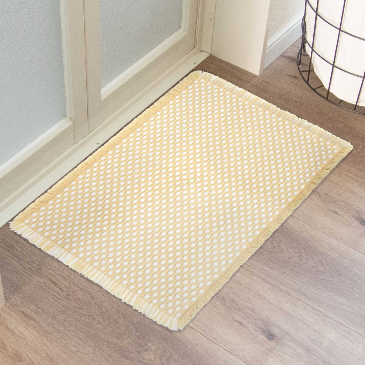 ドビー織機で織り上げた、ポコポコとした立体感が特徴です。吸水素材を糸と一緒に織り込んでいる為、吸水力に優れています。踏んだ瞬間に足裏の水分をさっと吸い取るのでさらっと快適な使い心地です。