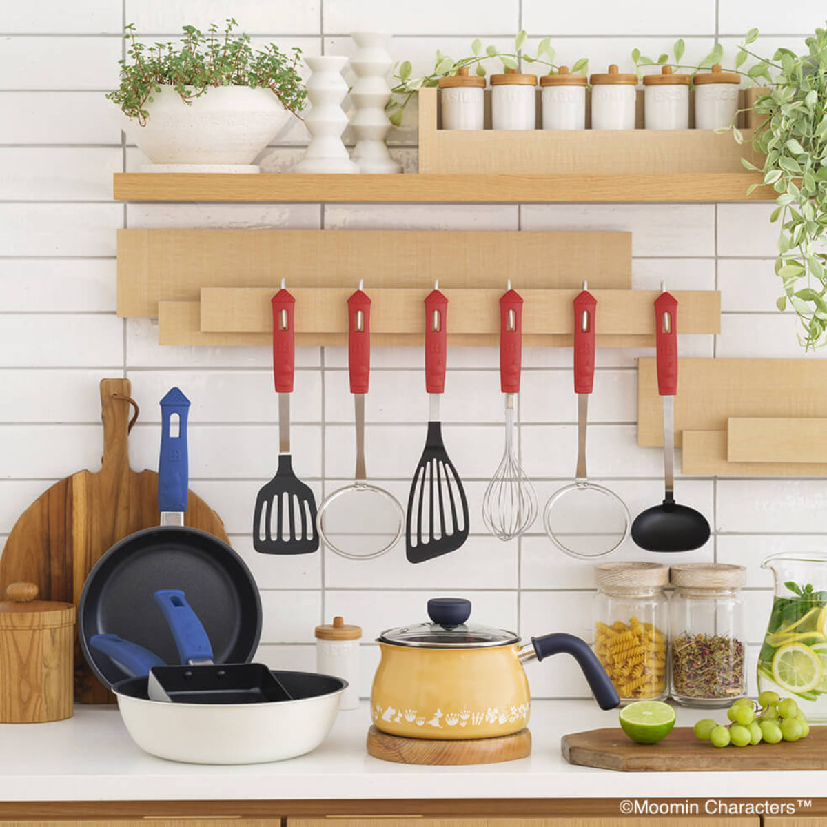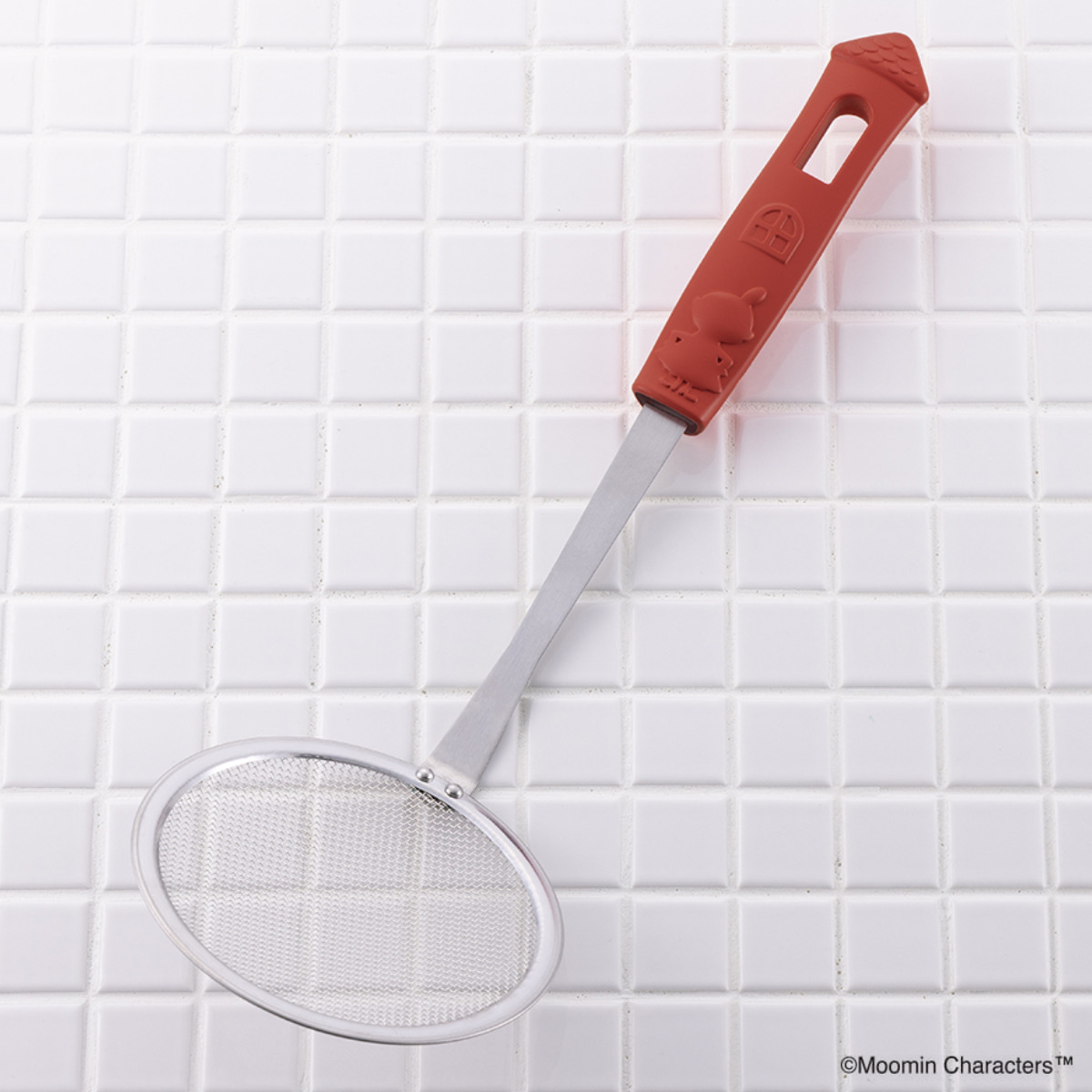 ムーミンハウスの窓に見立てたフック穴で吊り下げ収納ができます。こっくりとした赤いハンドルは、ナチュラルな雰囲気とも相性がよく、キッチンを明るく彩ります。