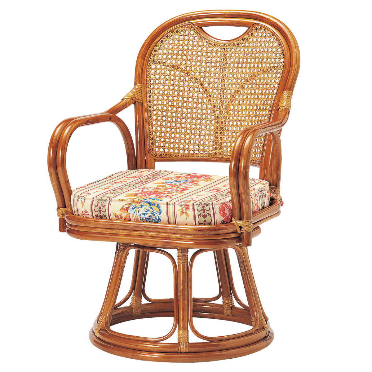 くるっと快適 天然ラタンの心地良い回転チェア ミドルタイプ