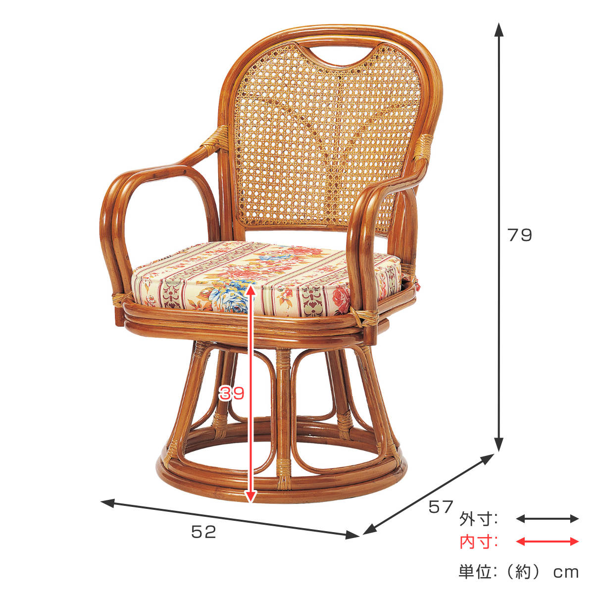 くるっと回って ほっとくつろぐ 天然ラタンの回転チェア